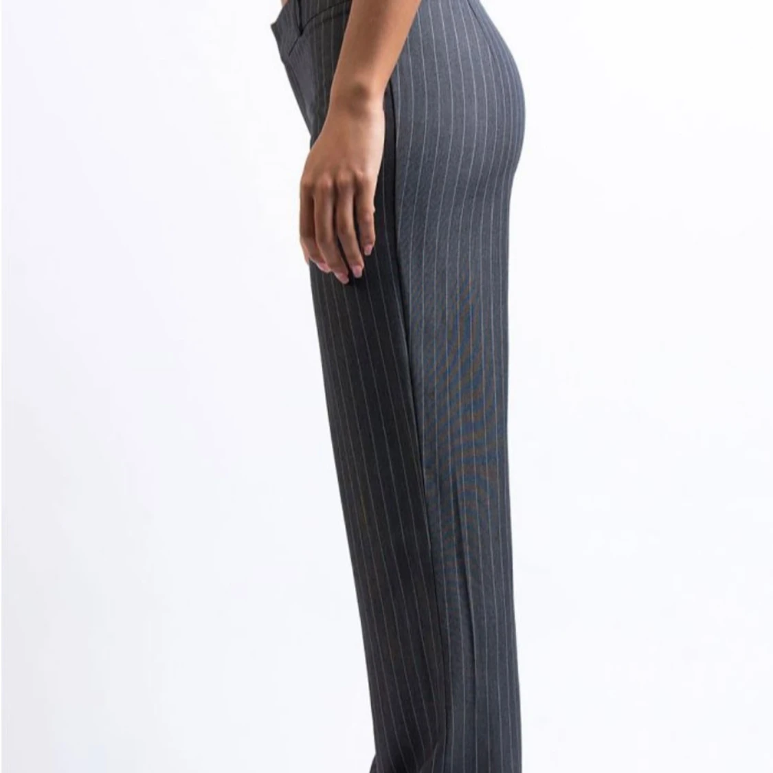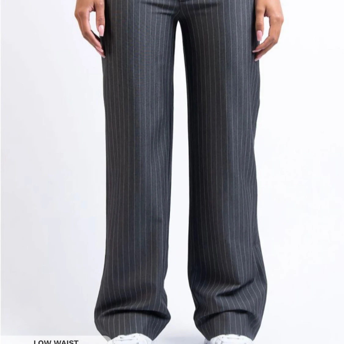 Säljer mina grårandiga kostymbyxor från madlady men som tyvärr inte kommer till användning längre. Använda ett fåtal gånger😇 storlek 32 men sitter som 34.