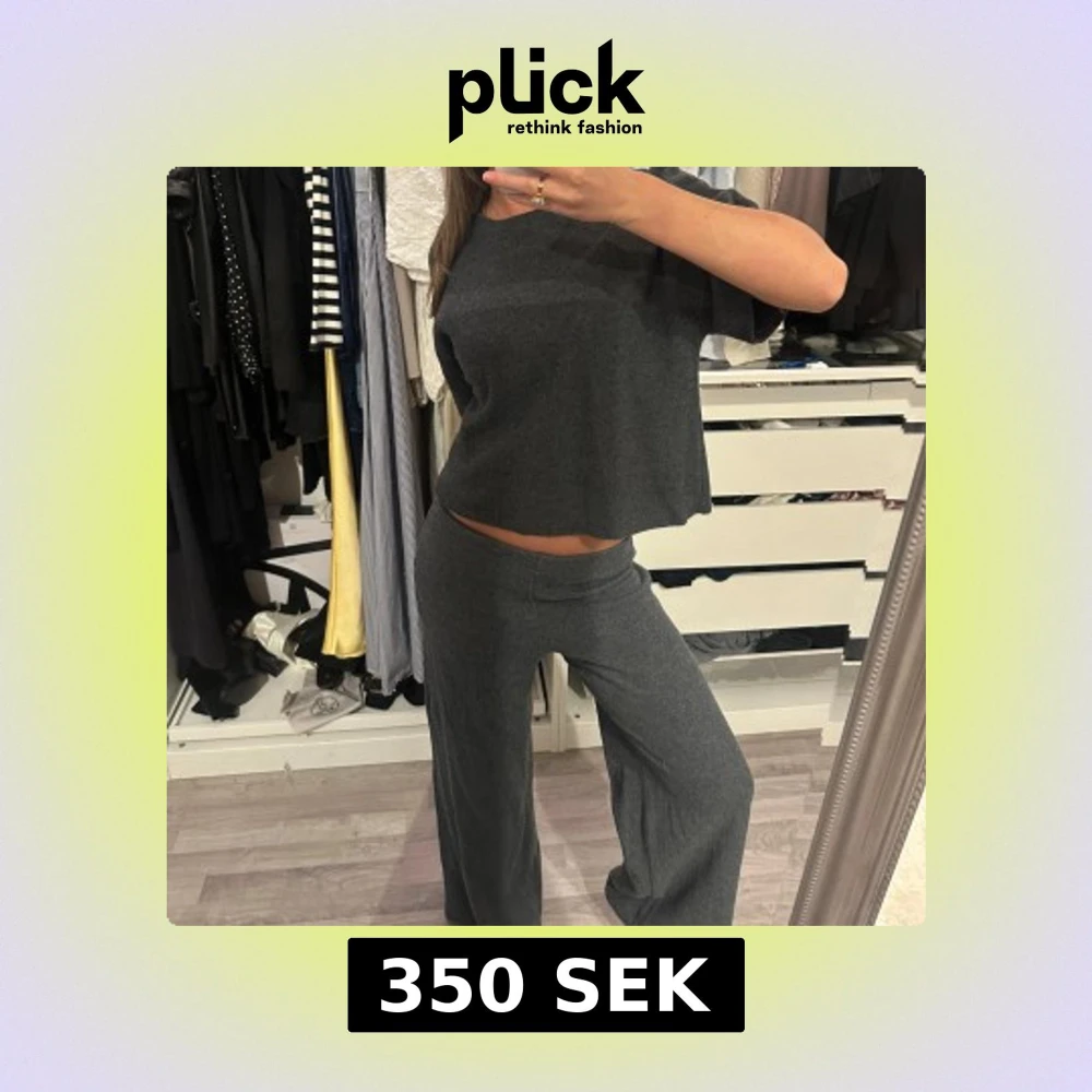 Gråa ribbade byxor och likartad tröja från Zara. Jätte mysigt lounge-set som aldrig är använt! Både byxor och tröja är i storlek S😇