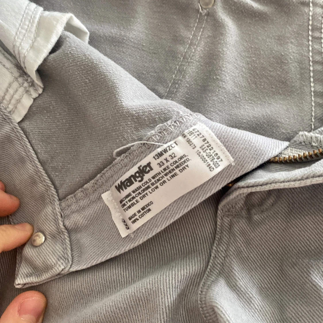 Gråa wrangler jeans i storlek 33x32! Säljer pga för stora, finns en liten flaw (se bild 3)