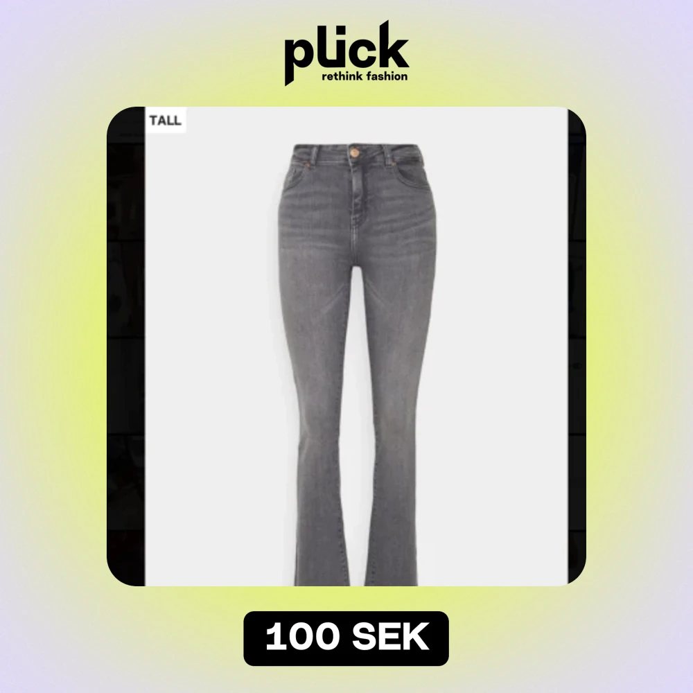 Gråa utsvängda jeans i modellen tall från ONLY/Zalando. Köpt här på plick men säljer då dom var för stora. Storlek L och längd 36.