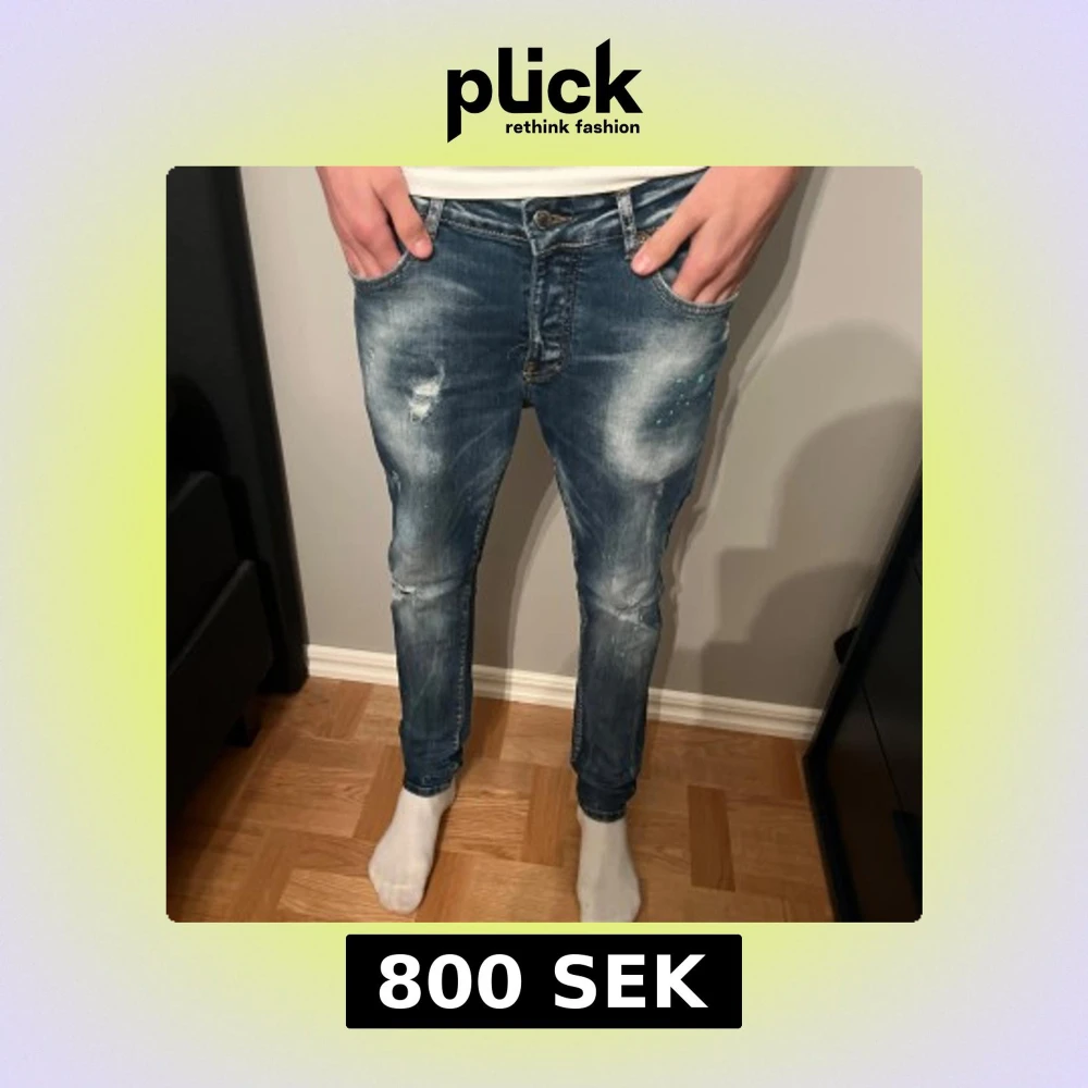 Tja säljer ett par sjukt snygga blå dsquared2 jeans. Modellen på bilden är 180cm lång och väger 62kg. Hör av er vid minsta frågor eller funderingar mvh Viggo.