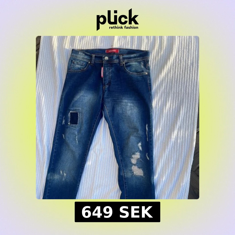 Snygga blå jeans från Dsquared2 med slitningar och patchdetalj på ena🌟🌟 jag har använt dom cirka 2 gånger dom är exklusiva och jag säljer dom för ändast 649