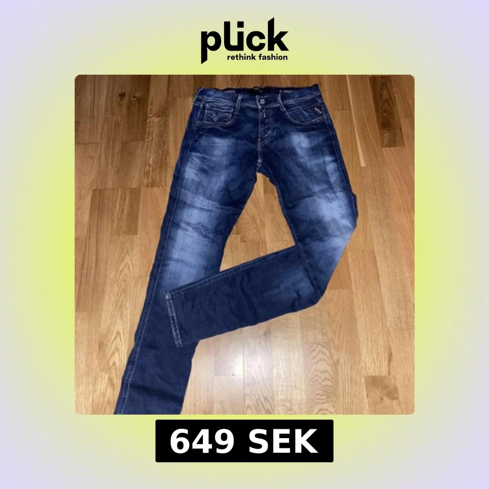 Snygga Replay Anbass jeans i mörkblå tvätt med slitningar och klassiska kontrastsömmar. Modellen har smal passform, fem fickor och dragkedjegylf. Perfekta för dig som gillar en modern och stilren look.