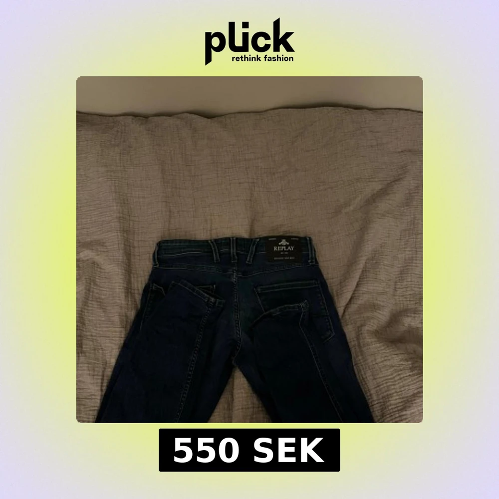 Snygga Replay Anbass jeans i mörkblå tvätt med klassiska fem fickor och kontrastsömmar. Jeansen har en slim passform och är tillverkade i stretchigt denim för extra komfort. Passar dig som gillar en modern och stilren look. De är knappt använda men jag har fått ett hål på knät annars ny skick