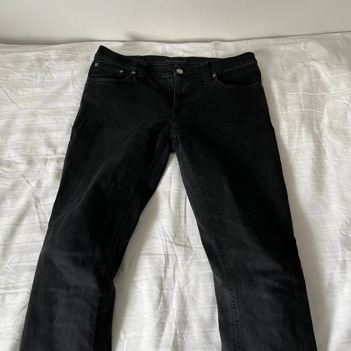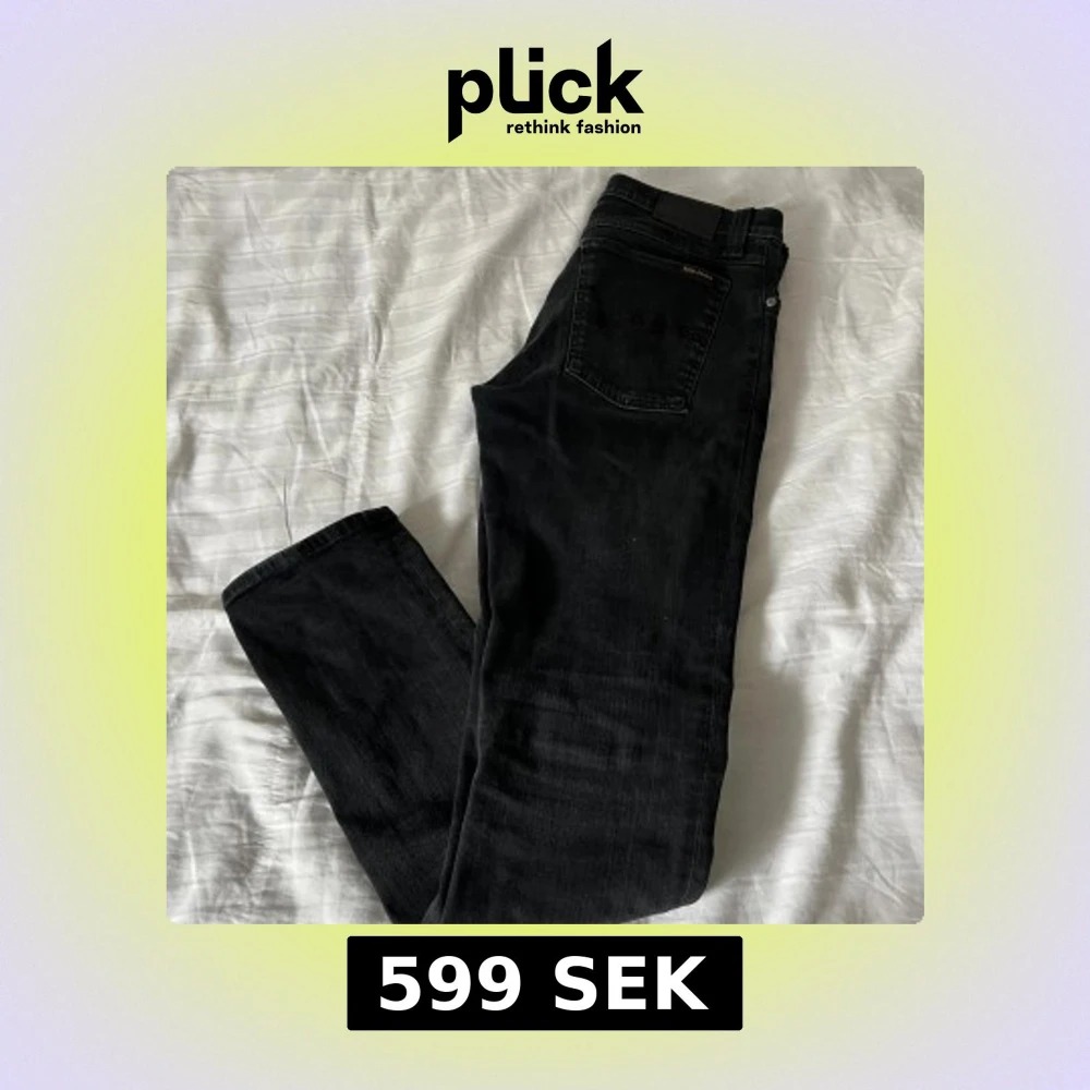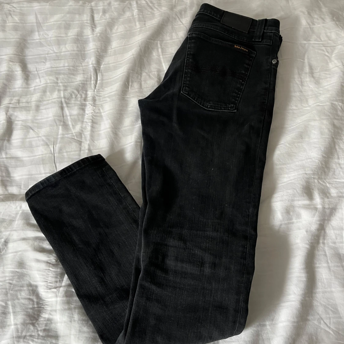 Säljer ett par snygga svarta nudie jeans i storlek 29/32✅dom har inga skador eller liknande