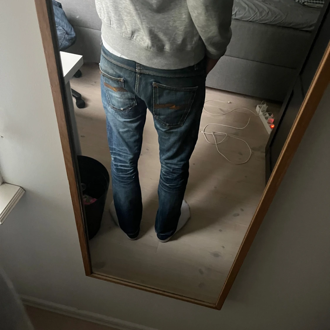 Tja! Säljer ett par sällsynta, helt otroligt snygga selvage nudie jeans i modellen grim tim! Jeansen har en del lagningar som bygger karaktär, mesta dels i skrevet. Det finns ett litet hål i skrevet som man kan se på bild 4 som kan fixas gratis i en nudie jeans butik! Nypris: 2200💸
