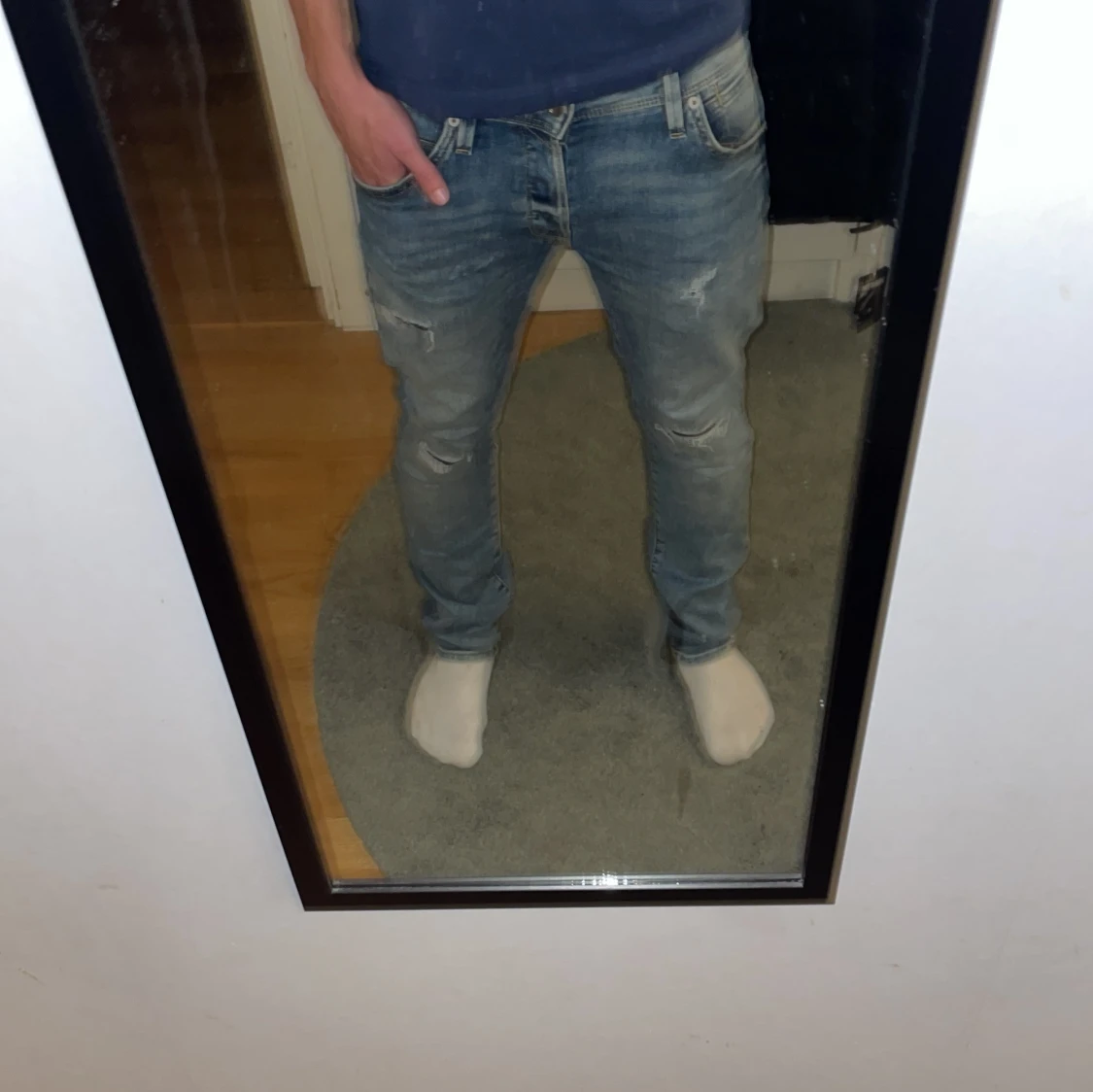 Säljer ett par otroligt unika och feta jeans från Jack and Jones som inte säljs längre. Dom har unika slitningar och en skön tvätt. Priset kan diskuteras