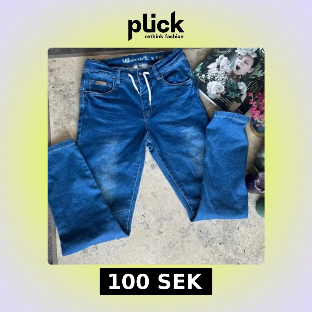 Snygga blå skinny jeans från LAB Industries med dragsko i midjan och klassiska fem fickor. Jeansen har en lätt tvättad look och är gjorda i stretchigt jeansmaterial för extra komfort. Perfekta för dig som gillar en smal passform och stilren design. Riktigt sköna.