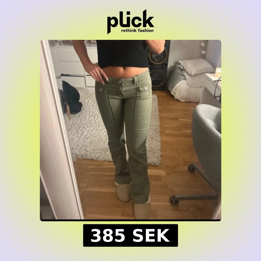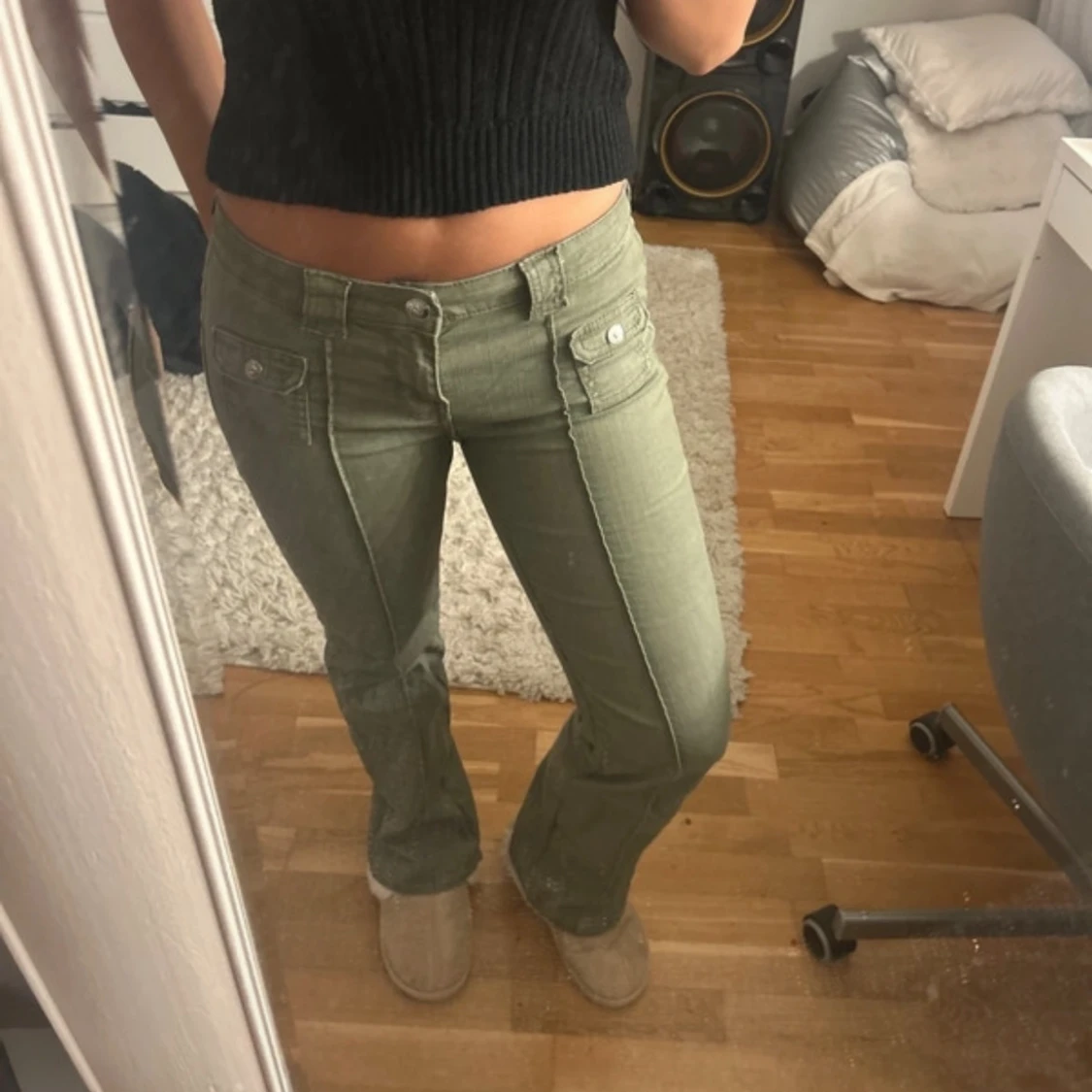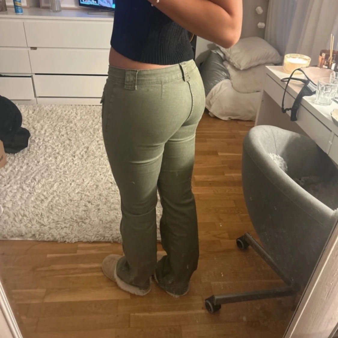 Säljer dessa trendiga gröna jeans från H&M!! Jätte fint skick och inga defekter!! Kom privat för frågor.