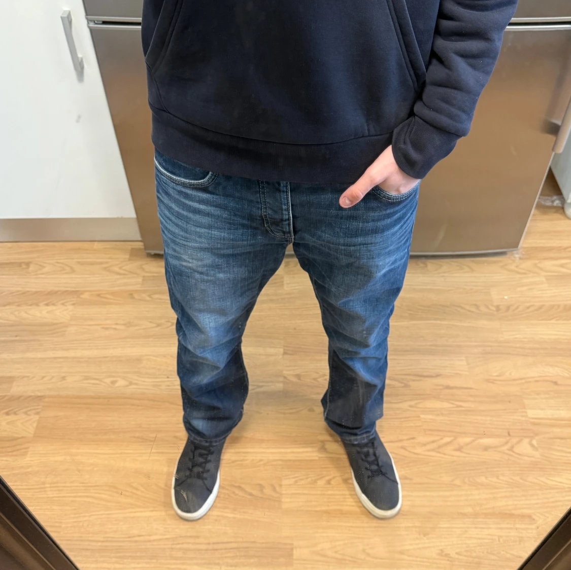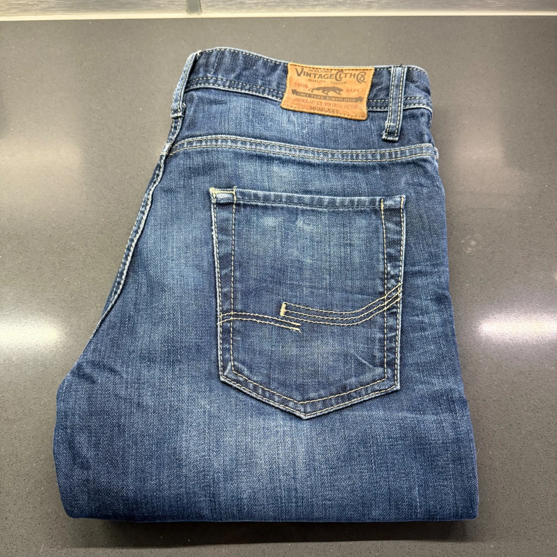 Sjukt fina Vintage Jack & Jones Regular/Clark jeans i en sjuk färg och tvätt/fade. Mått - Midja: 43cm, Benlängd: 108,5cm. Modellen är 184cm & 63kg. Hör av dig vid funderingar!🤩