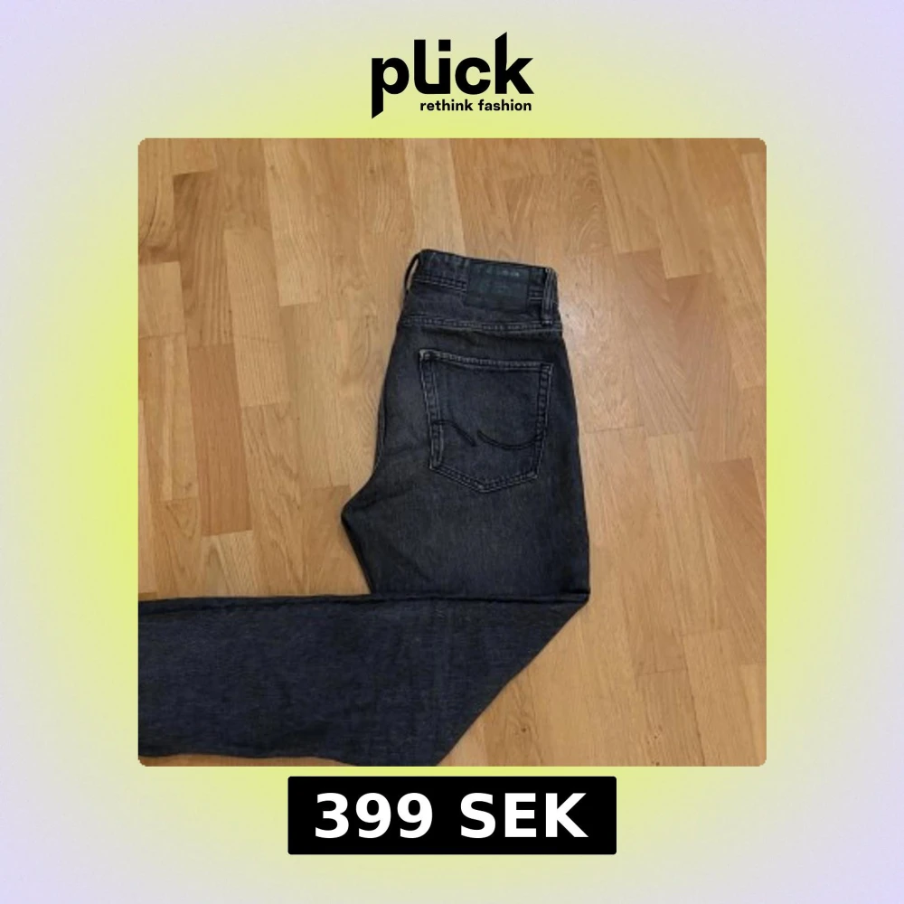 Säljer ett par svarta jeans från Jack & Jones. Väldigt fina jeans i bra skick med små snygga slitningar vid fickorna. Ny pris: 600kr Priset är inte huggit i sten och går att diskutera. Skriv vid funderingar ✌️⚡️