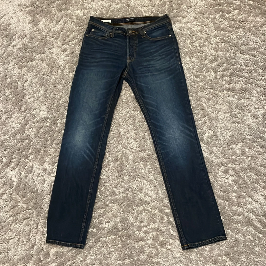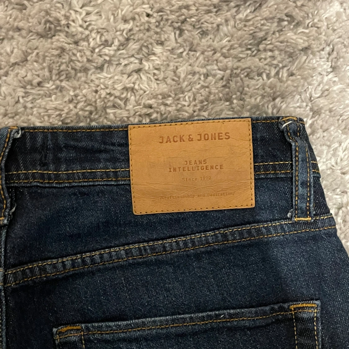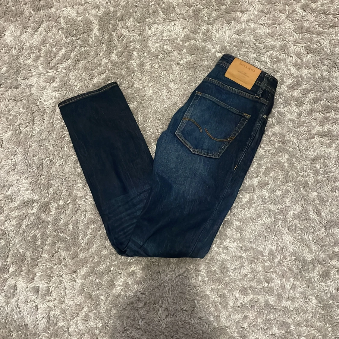 Mörkblå jeans från Jack and Jones i modellen slim fit/tim. Storlek 28/32. Nypris runt 600 och mycket bra skick (9/10 det ända lilla är ränderna i knävecken ).Hör av er vid prisförhandling, fler bilder, mått eller andra tankar så kommer svar snabbt💫
