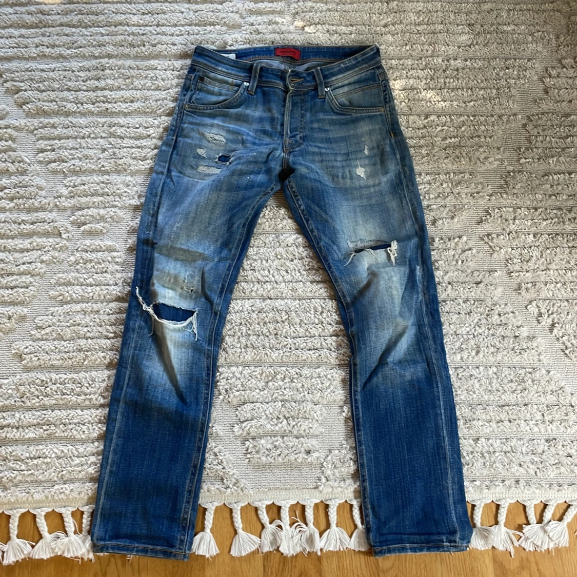 Säljer dessa feta Jack & Jones jeans! Modellen på jeansen är slim/glenn. Skick 8/10. Modellen på bilden är 174.