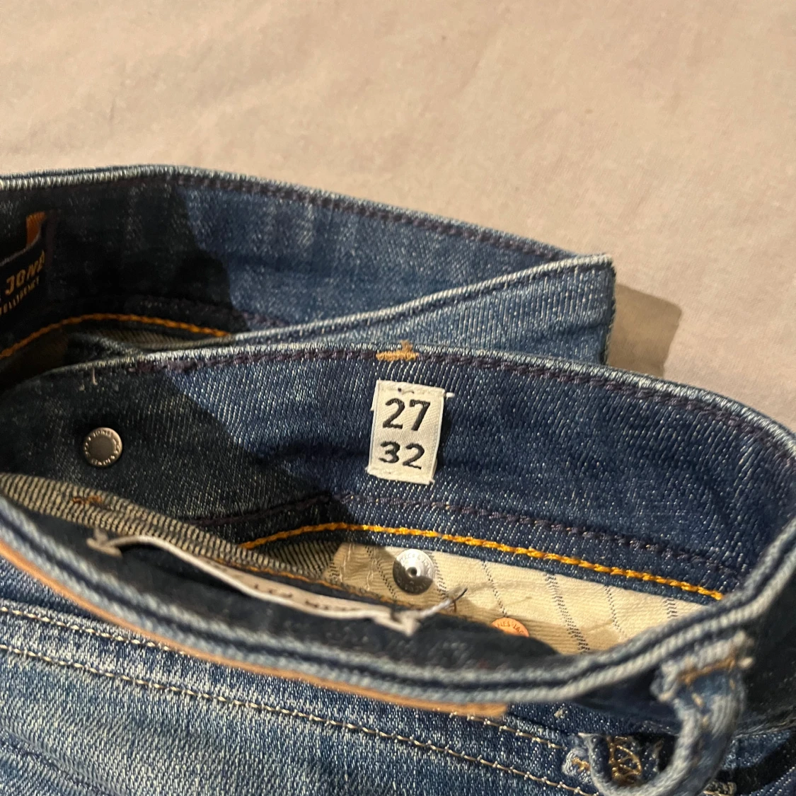 Helt nya blåa jeans från Jack and Jones i storlek 27/32 Aldrig använda – bara testade! Sitter snyggt med en klassisk slim fit-passform och är i riktigt bra kvalitet, som alltid från Jack and Jones.