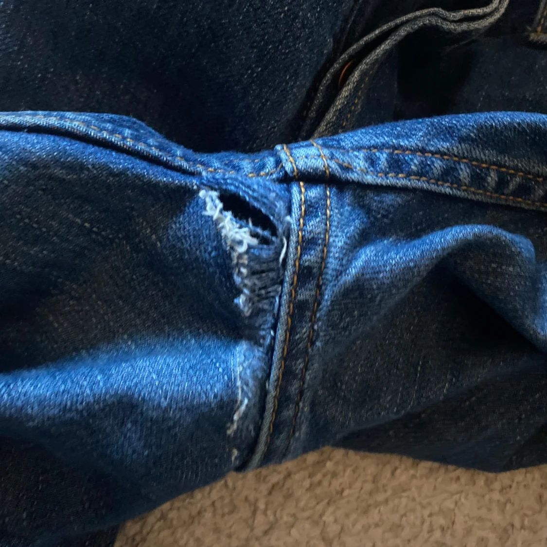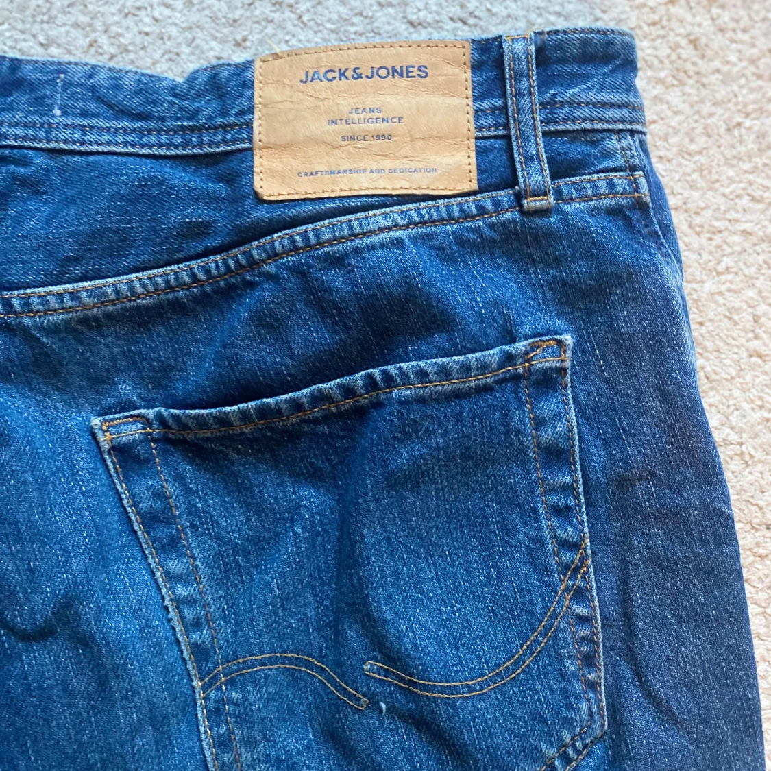Säljer ett par klassiska blå jeans från Jack & Jones med raka ben och normal passform. Jeansen har fem fickor, gylf med dragkedja och snygga kontrastsömmar. Perfekta till vardags och enkla att matcha med olika stilar. Säljes då de har en defekt under skrevet. Tveka inte på att höra av dig vid frågor eller funderingar! Mvh Sixten