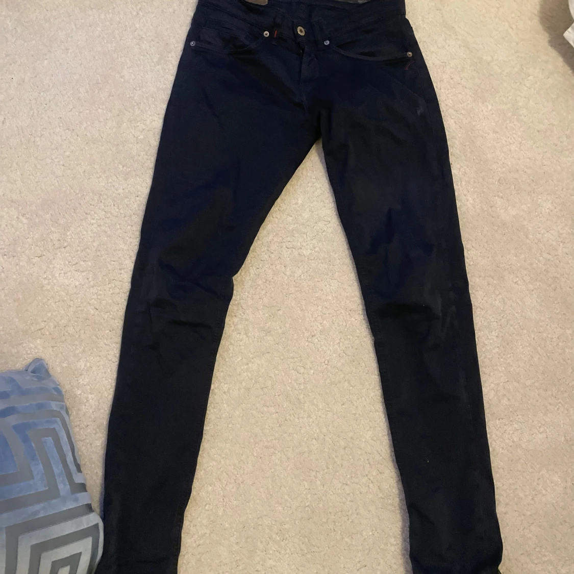 Snygga svarta jeansbyxor med en klassisk design. De har en normal passform och är perfekta för en stilren look. Byxorna har knappar och dragkedja framtill samt fickor både fram och bak.