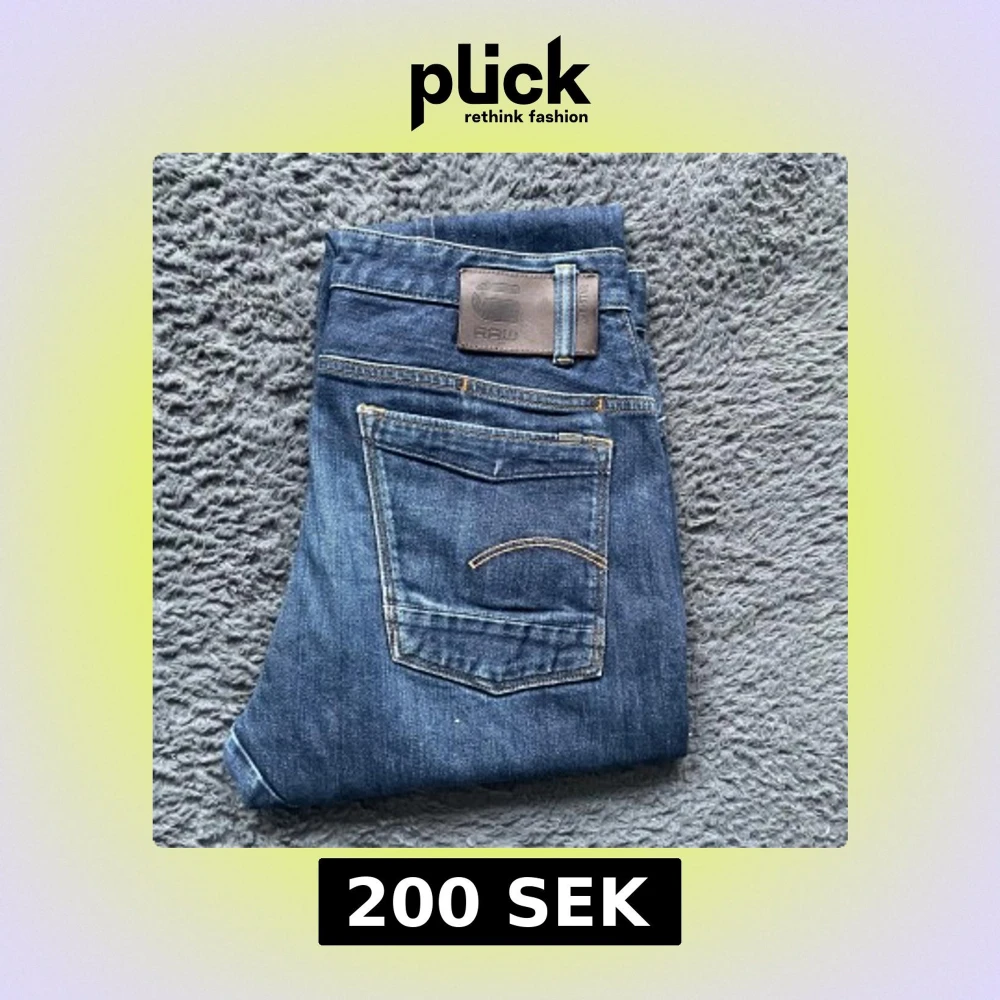 Säljer ett par snygga blå jeans från G-Star RAW. De har en klassisk femficksdesign och en rak passform. Jeansen har en diskret logga på bakfickan och är tillverkade i ett slitstarkt denimtyg. Perfekta för en stilren look. Tyvärr kan jag inte skicka bild när jag själv bär plagget då jag för det första ofta inte kan ha storlekarna jag säljer och för det andra skulle det bli alldeles för mycket jobb när jag säljer så mycket, så jag rekommenderar att man kikar måtten på sista bilden