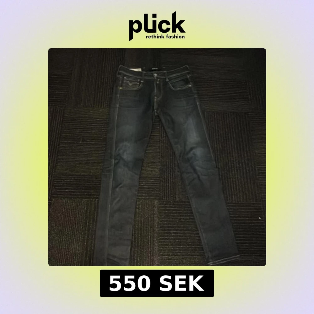 Snygga svarta jeans från Replay med en slim passform. De har klassiska fem fickor och en dragkedja med knappstängning. Perfekta för en stilren look. W29 L32. nypris 900.