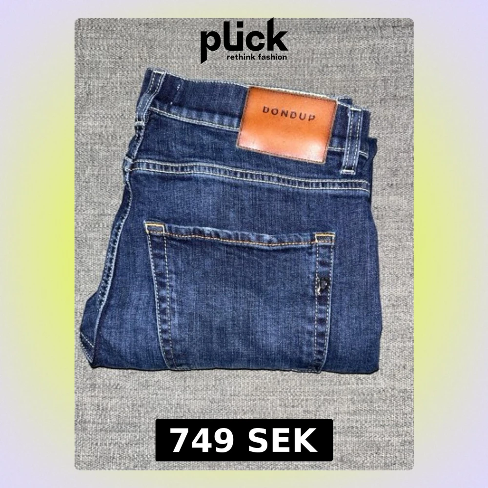 Snygga mörkblå jeans från Dondup med klassisk femficksdesign och kontrastsömmar. Jeansen har en regular passform och är tillverkade i mjukt denimtyg med en skön känsla. Perfekt för dig som gillar stilrena och tidlösa jeans. Hör av er vid intresse/ frågor!