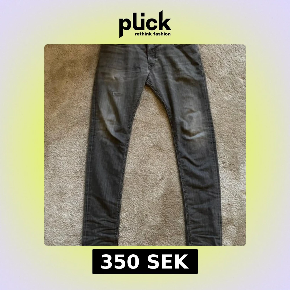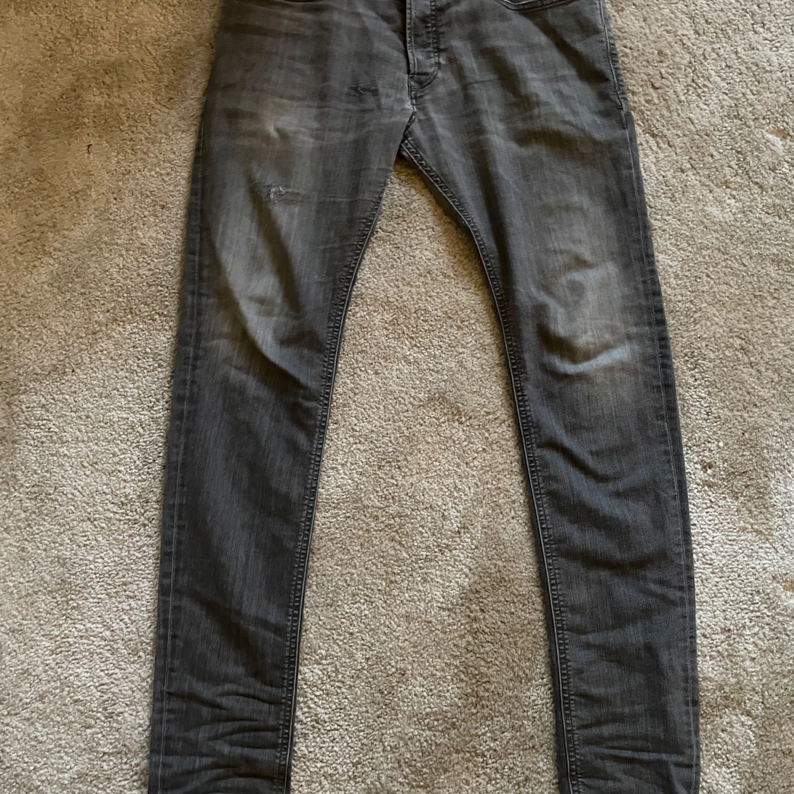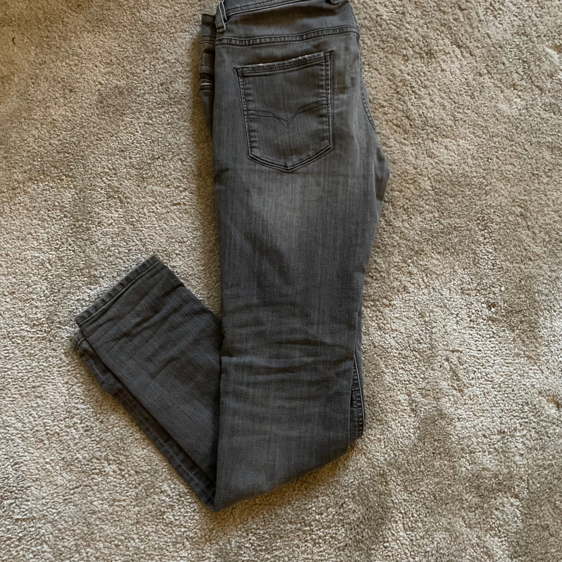 Säljer ett par grå slim fit jeans från Diesel. Dem har en snygg wash samt lite snygga slitningar. Dem är i storlek 30. Hör av dig ifall du undrar något😁