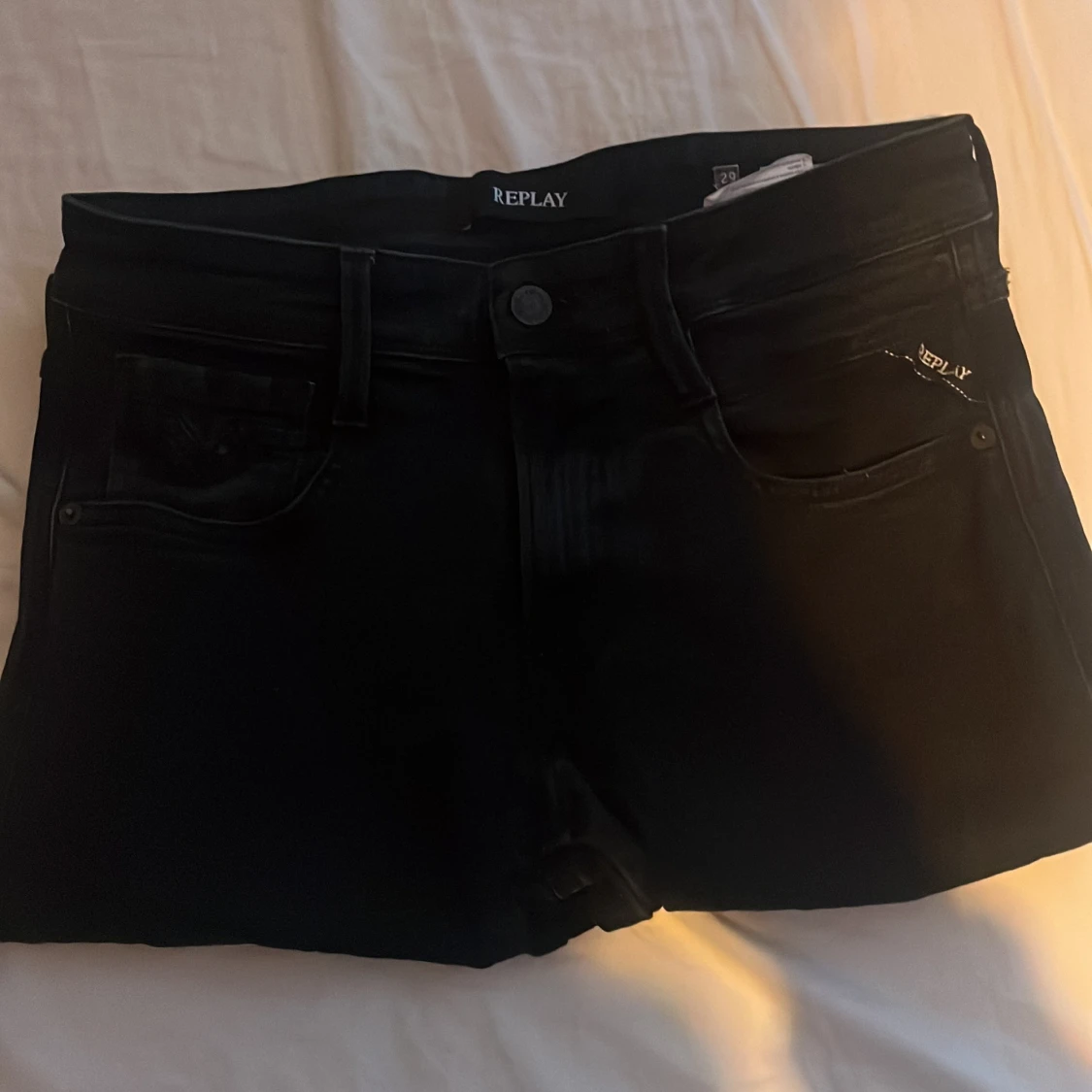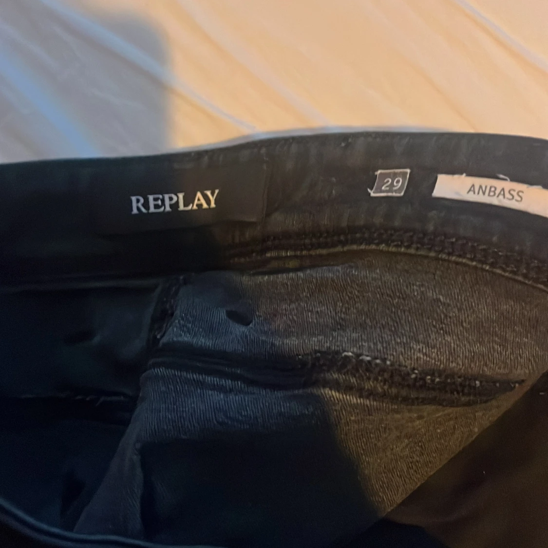 Säljer ett par svarta Replay Anbass jeans med klassisk femficksdesign och normal passform. Byxorna har dragkedjegylf och är tillverkade i stretchigt material för extra komfort. Perfekta till vardags och enkla att matcha med olika stilar. Knappt använda. Skriv om ni har några frågor.