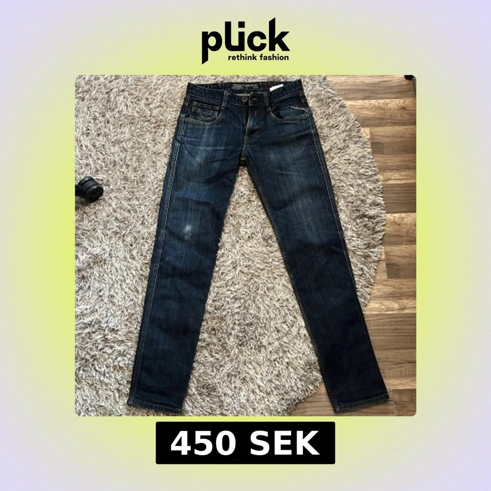 Snygga mörkblå jeans från Replay med klassisk femficksdesign och kontrastsömmar. Jeansen har en straight passform och är tillverkade i slitstarkt denim. Perfekta för en stilren look.