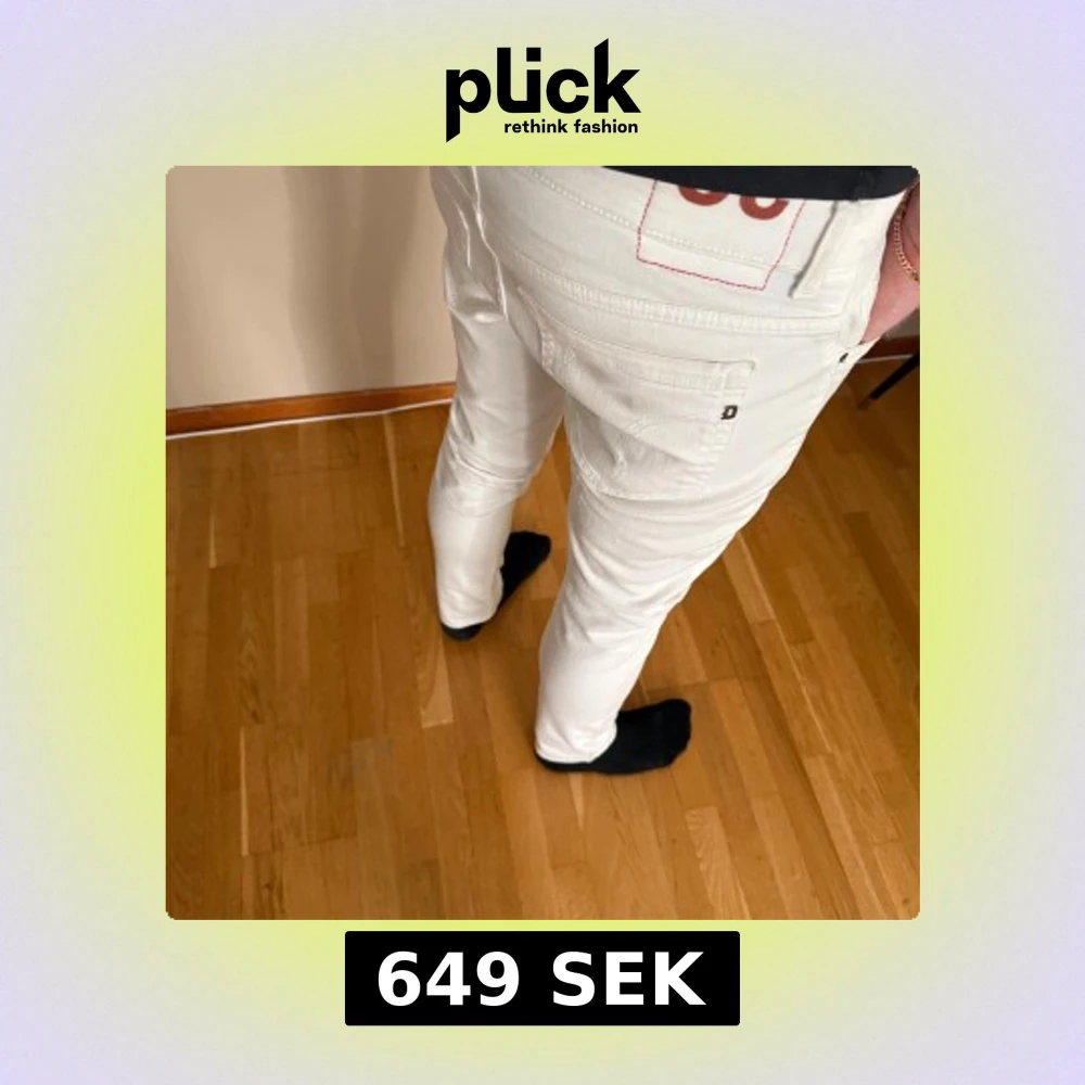 Trendigaste jeansen just nu! Säljer dessa mycket fina dondup jeansen i modellen george med snygga slitningar, storlek 32. Modellen är 186 cm läng. Bra skick! Nypris 3499.