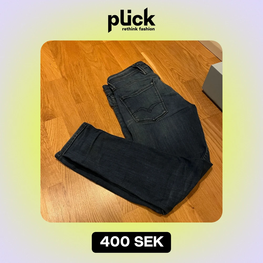 Snygga mörkblå jeans från Replay med klassisk femficksdesign och knappgylf. Perfekta för en avslappnad stil med en touch av elegans.