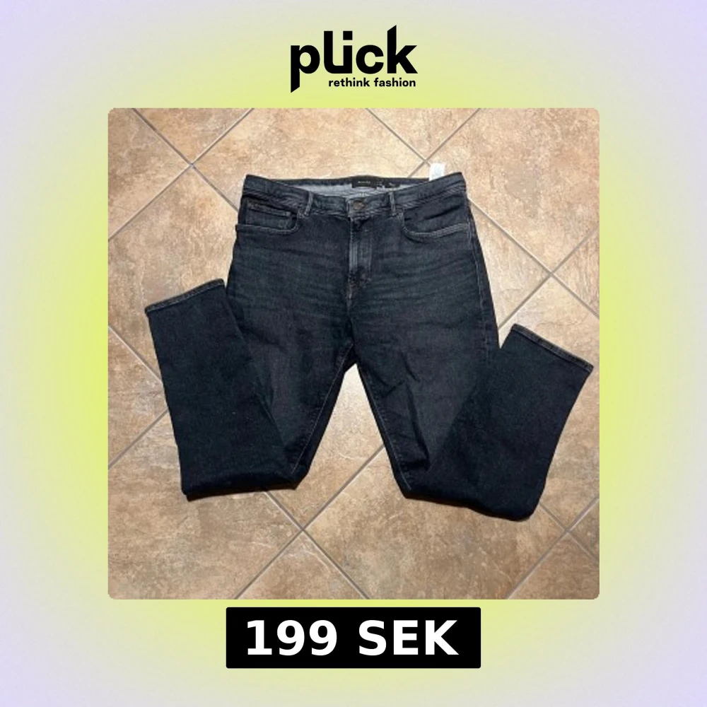 Snygga svarta/gråa jeans från Massimo Dutti i nyskick (tapered fit). De har en normal passform och är tillverkade i ett slitstarkt material. Perfekta för en stilren look, passar dig som är runt 1,83-1,86. Mvh William🙌🏼