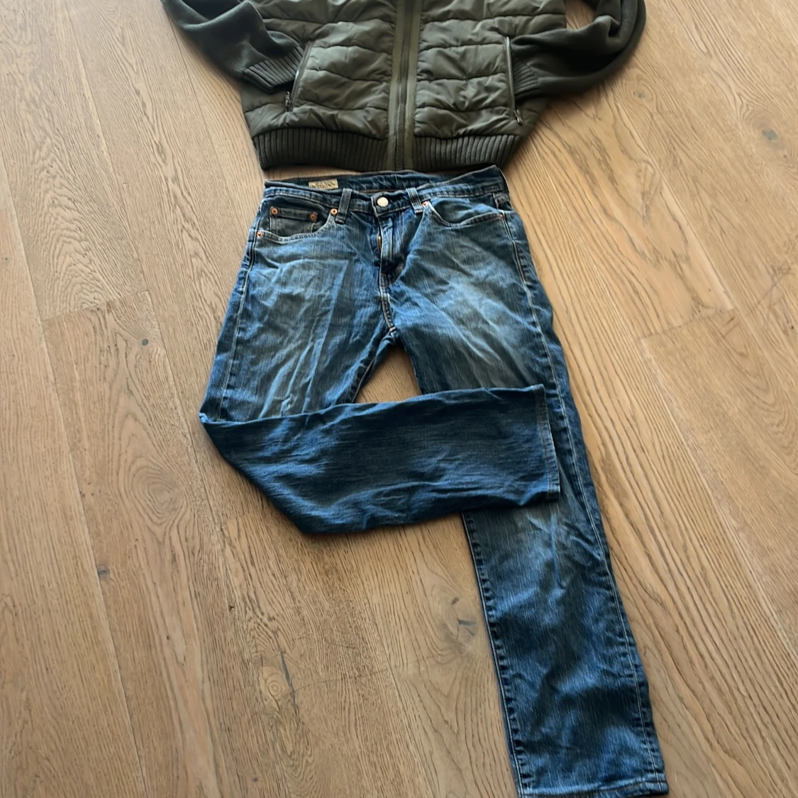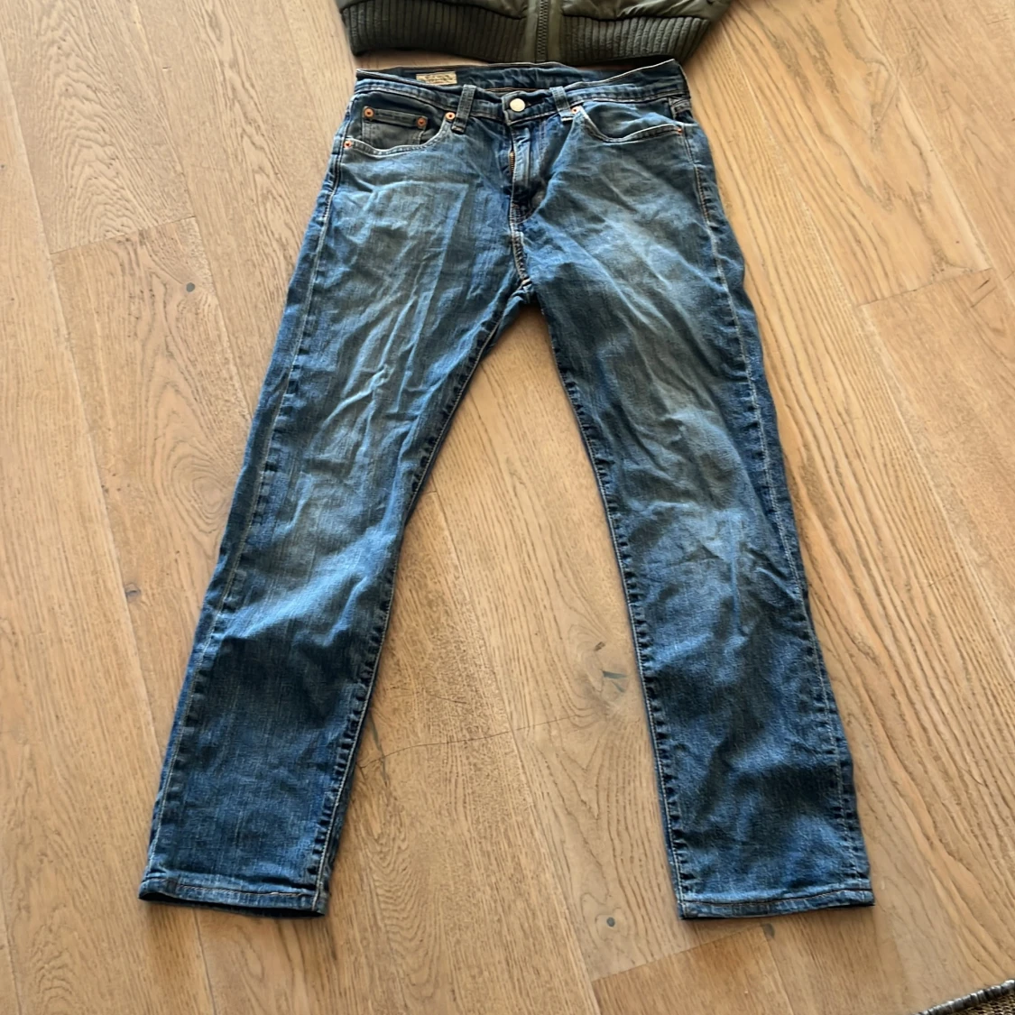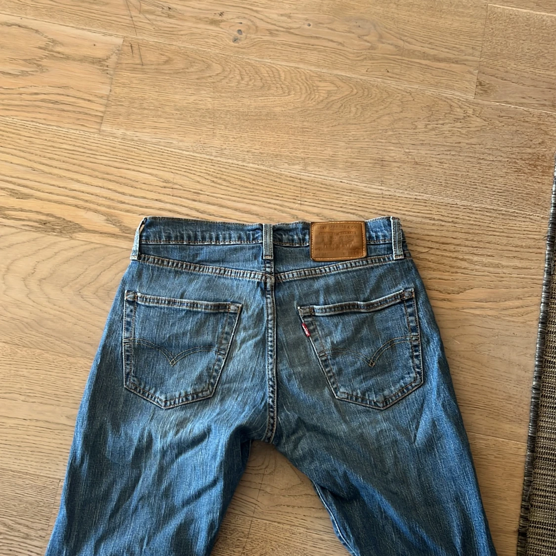 Snygga Levi's jeans i klassisk blå denim. De har en straight passform och är perfekta för en avslappnad stil. Jeansens design inkluderar de ikoniska fem fickorna och en knappgylf. Märkeslappen i läder sitter på baksidan av midjan.