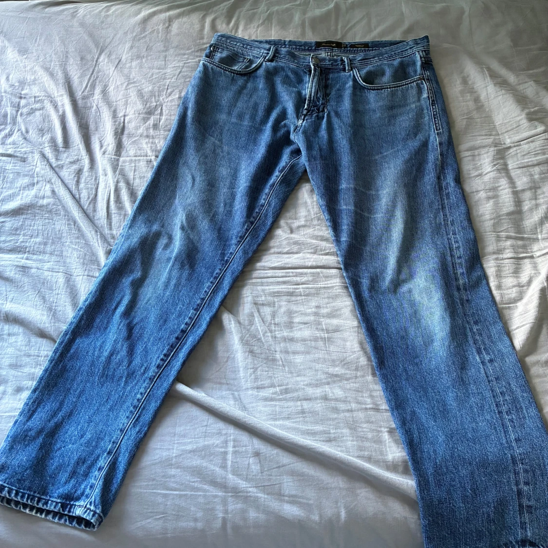 Nice Massimo dutti jeans i mellanblå tvätt med raka ben och femficksmodell. Jeansen har normal midja och är tillverkade i slitstarkt bomullsjeans. Perfekta för dig som gillar en tidlös och avslappnad look.