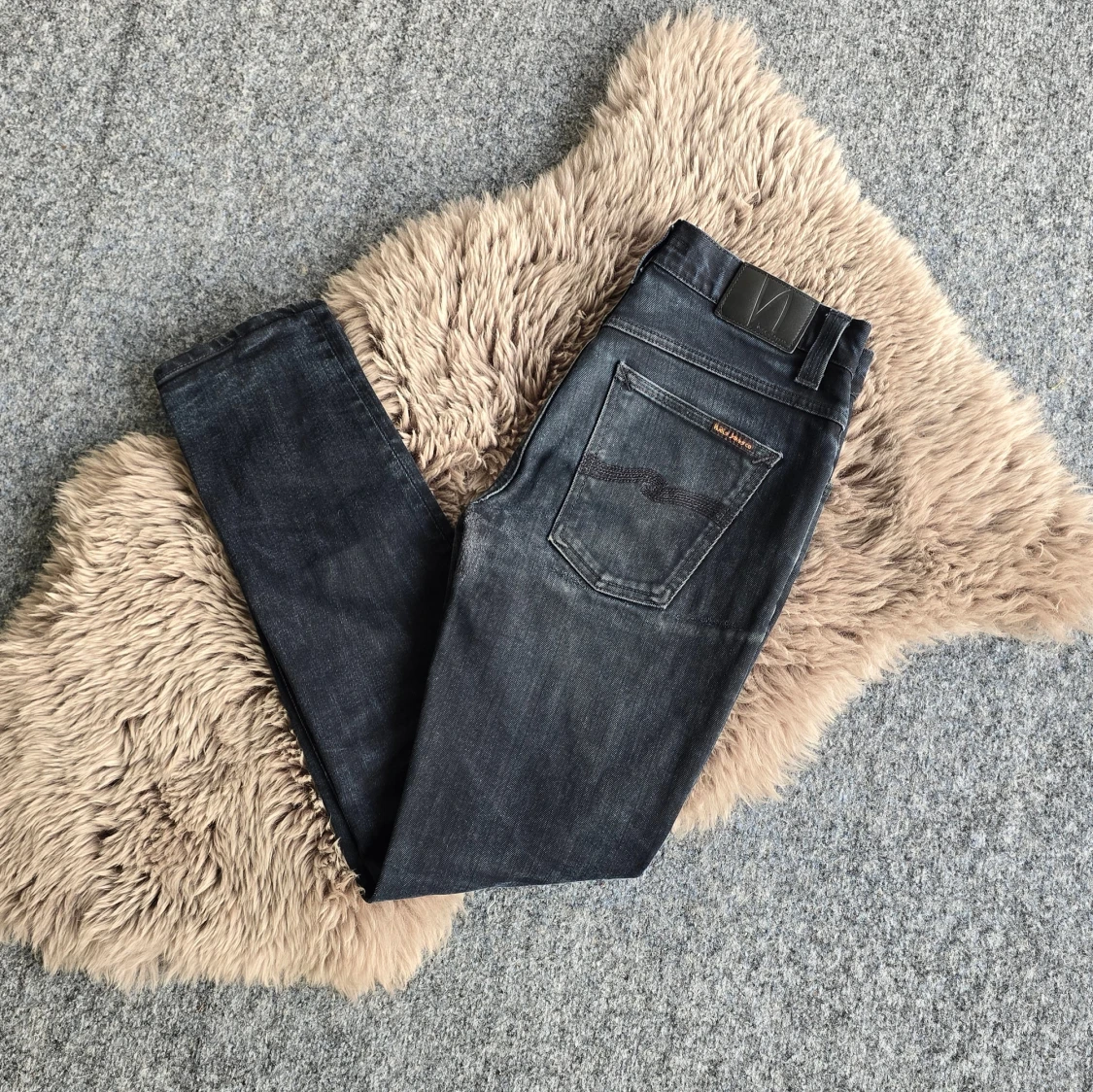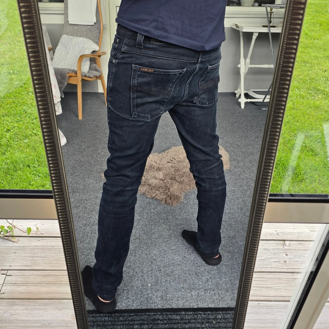 Nudie jeans storlek 31/32. Bra skick förutom att de är lite slitna vid ljumsken. Dock inget som syns när man har på sig dem 🤩