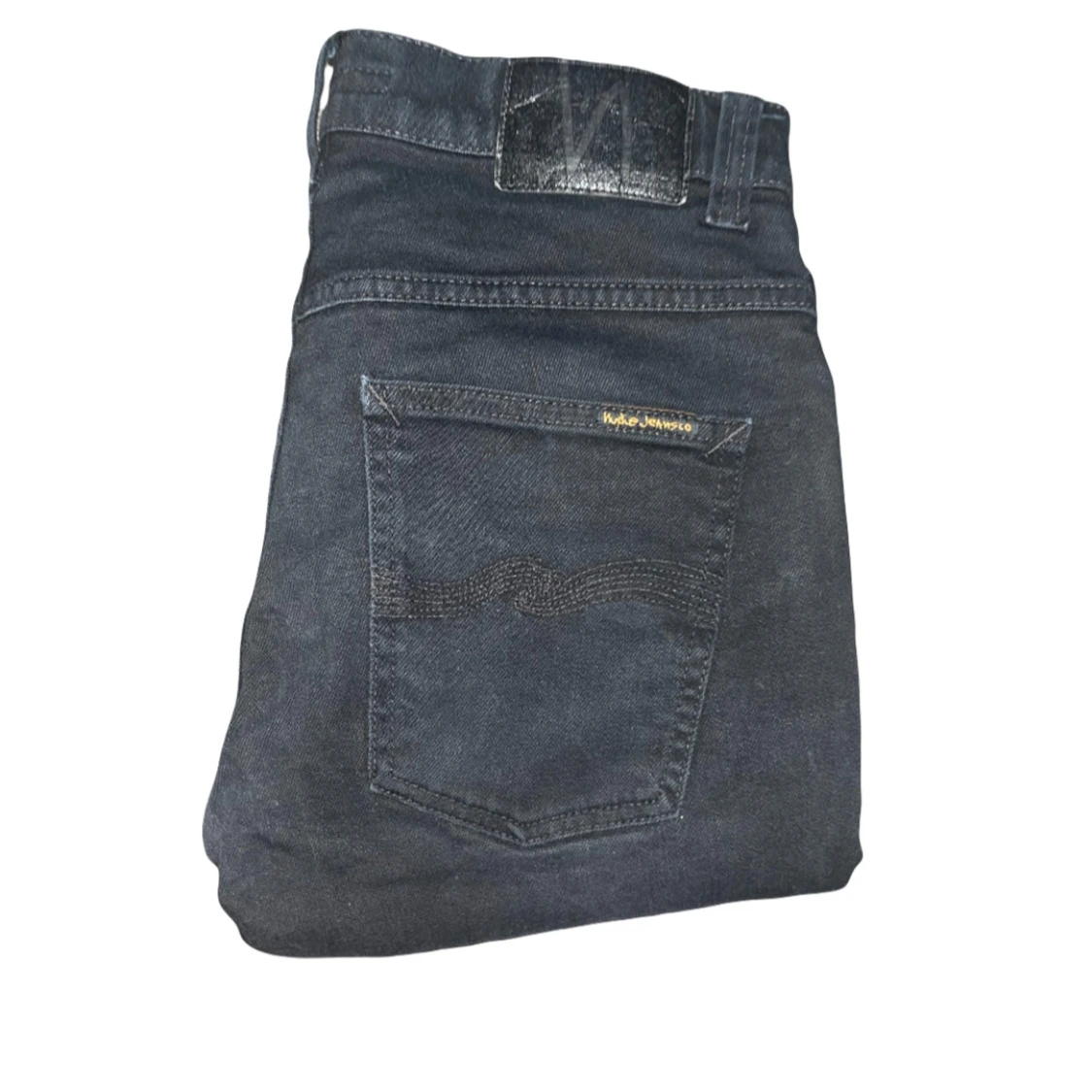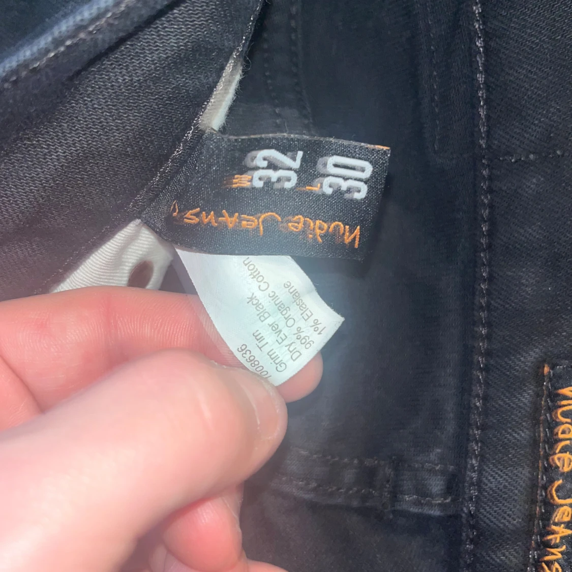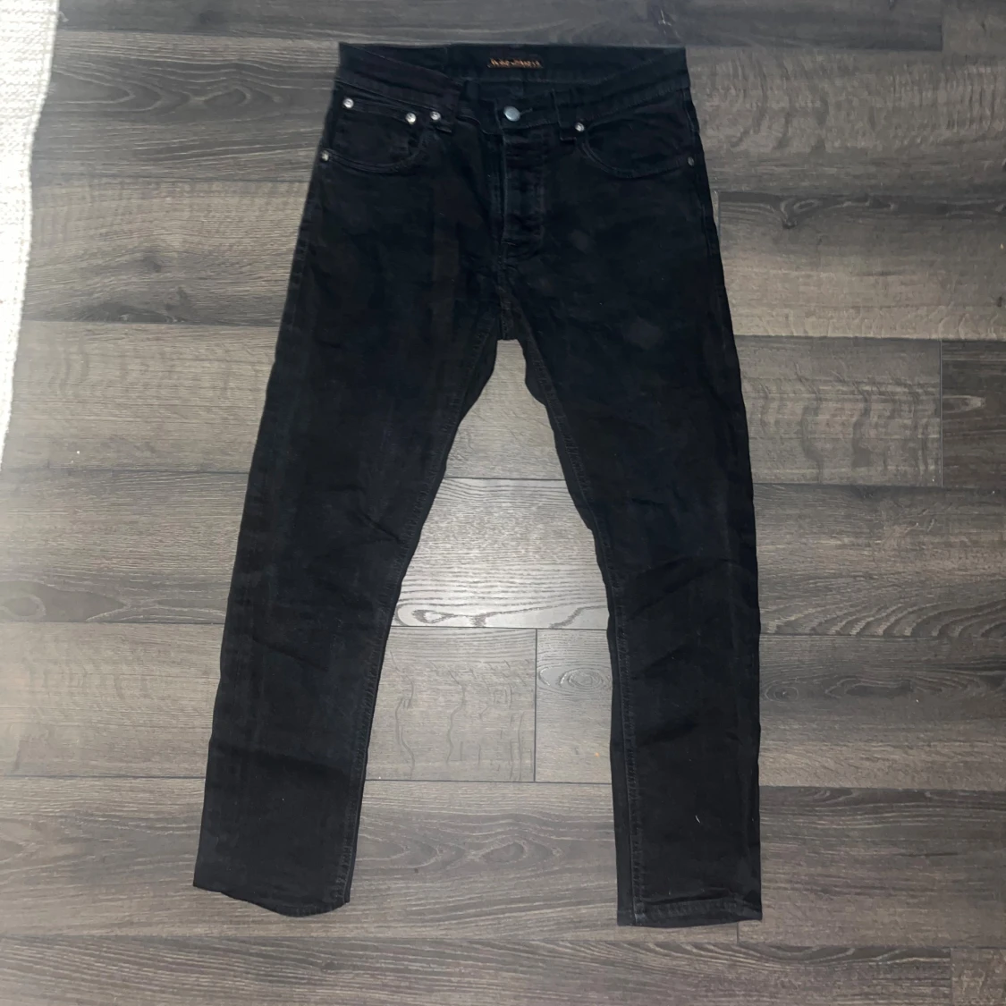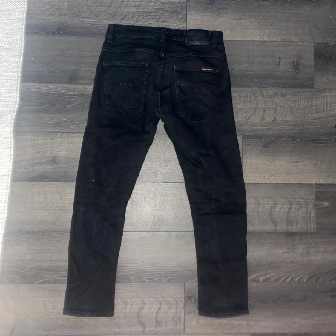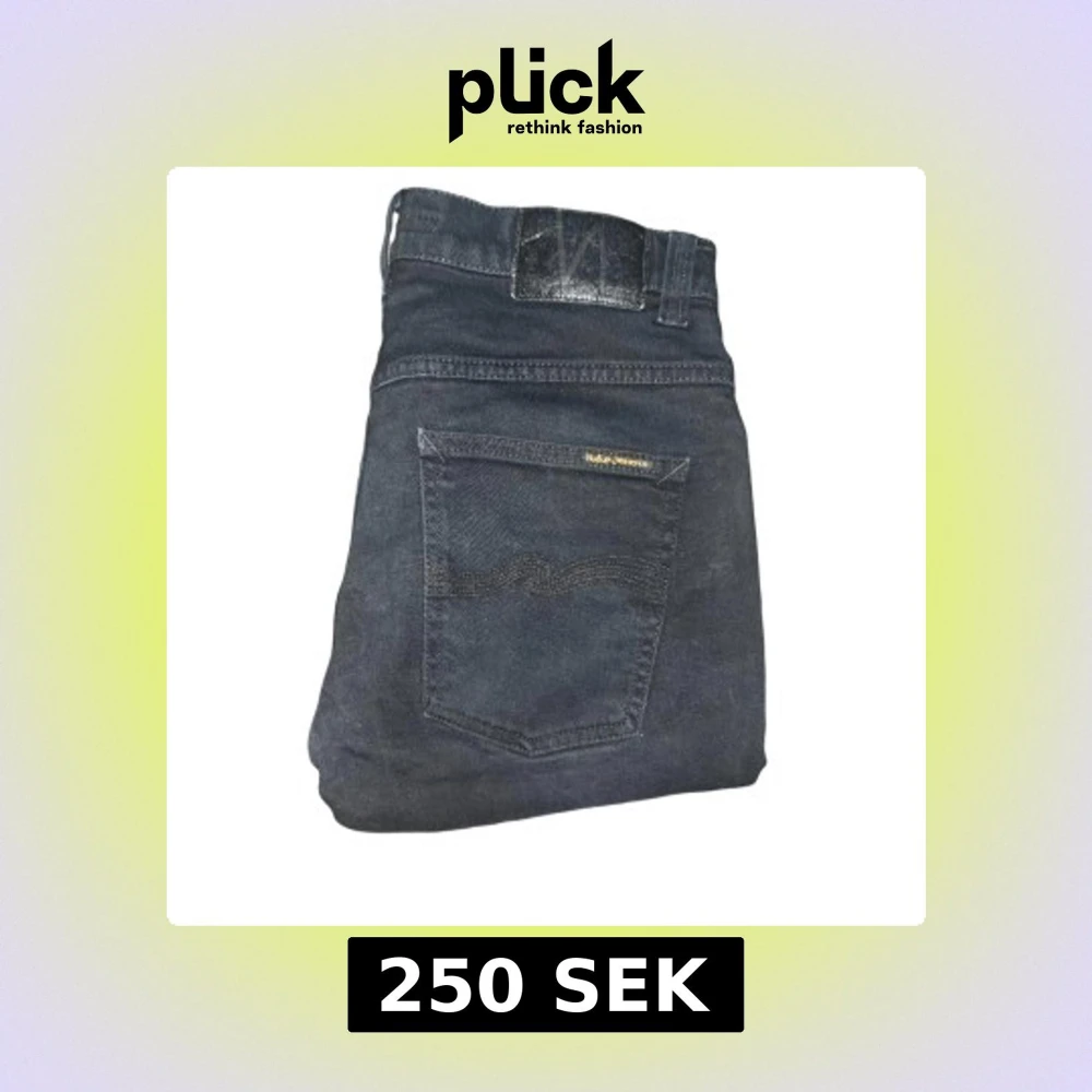 Svarta slim jeans från Nudie Jeans med klassisk femficksdesign och diskret broderad bakficka. Tillverkade i stretchig bomullsmix för en bekväm passform. Snygga detaljer med svarta sömmar och logotyp på bakfickan. Midja 37cm, längd 91,5cm. Ifall det inte finns någon bild i annonsen där jag bär plaggen jag säljer så är det för att jag ej kan ha storleken heller passformen, så kolla måtten för storlek och googla på modellnamnet för passform 😉