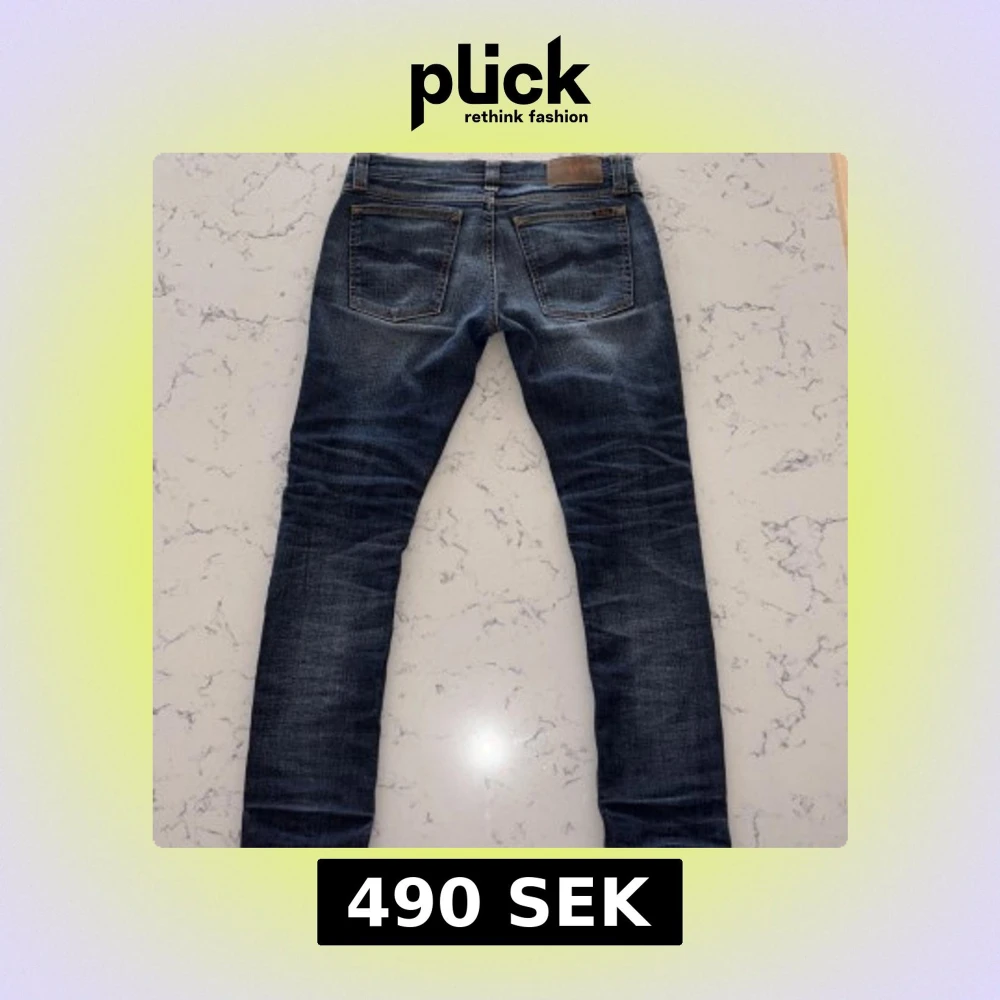 Säljer ett par navy blåa Nudie Jeans. INGA DEFEKTER förutom använd har en tvättad look skick är ganska bra 8/10 inga skador men täcken på andvänt är i storlek 26W men passar 28 mer. 28W 32L priset kan diskuteras och NYPRIS är 2000kr