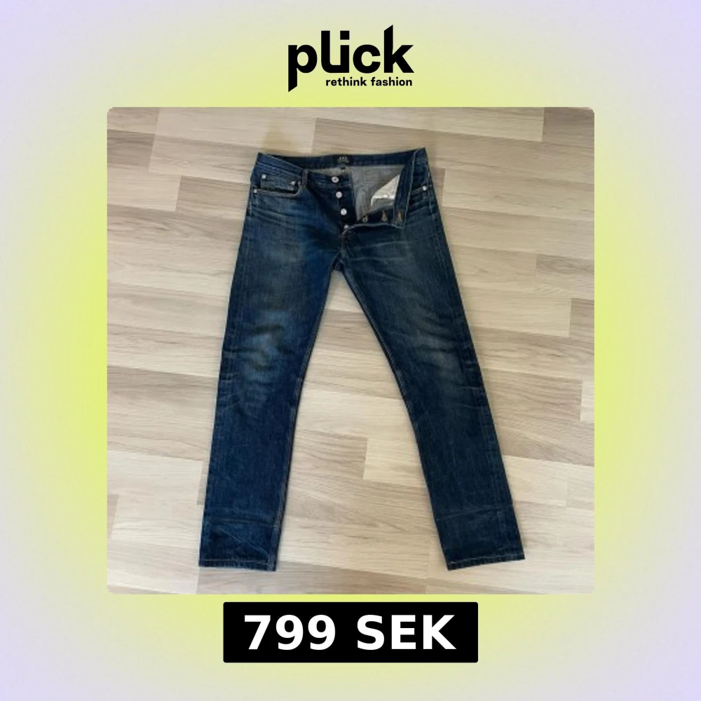 Säljer dessa feta A.P.C jeans. Jeansen är i väldigt bra skick. Storlek-Waist 31. Nypris- 3000kr. Det är Selvage.