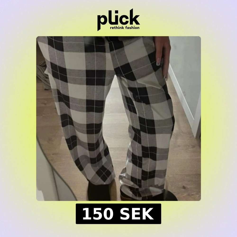 Snygga byxor med rutigt mönster i svart, vitt och grått. Kan användas som pijamas byxor. Materialet känns mjukt och lätt.