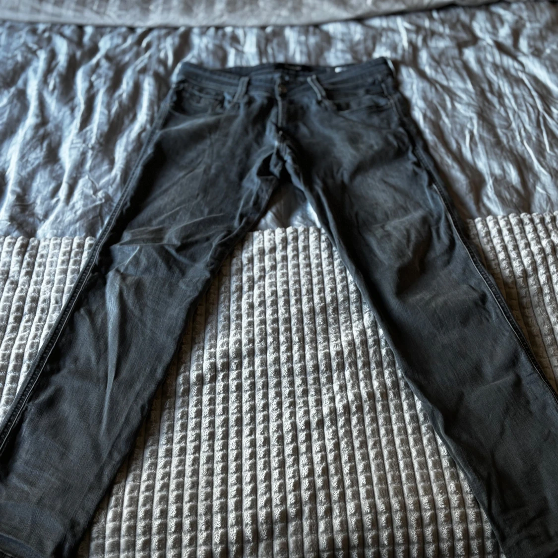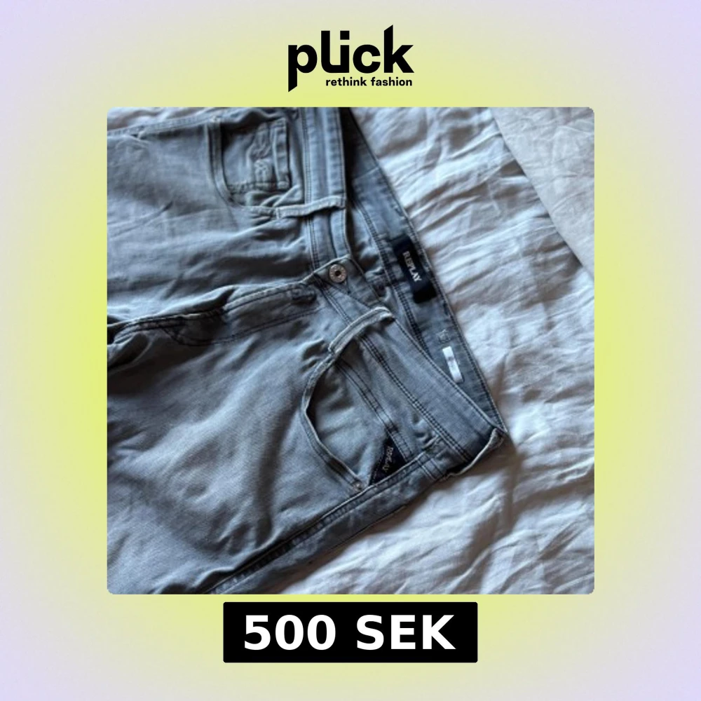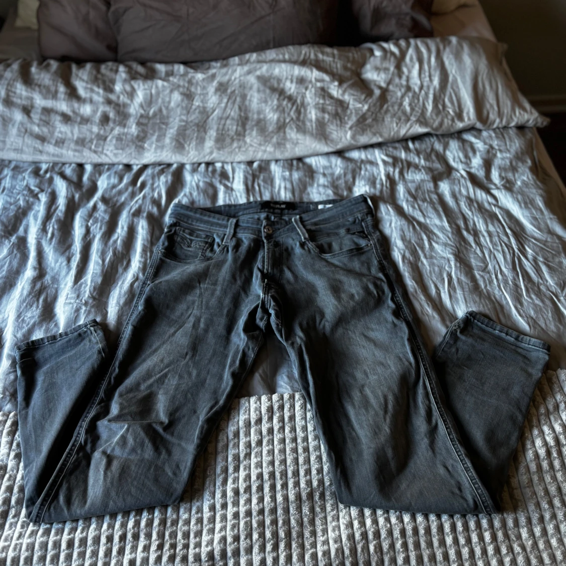 Snygga grå jeans från Replay med klassisk femficksdesign och smal passform. Jeansen har dragkedjegylf och diskreta Replay-detaljer vid fickorna. Perfekta för dig som gillar en stilren look med lite edge. Skriv för fler frågor eller bilder.