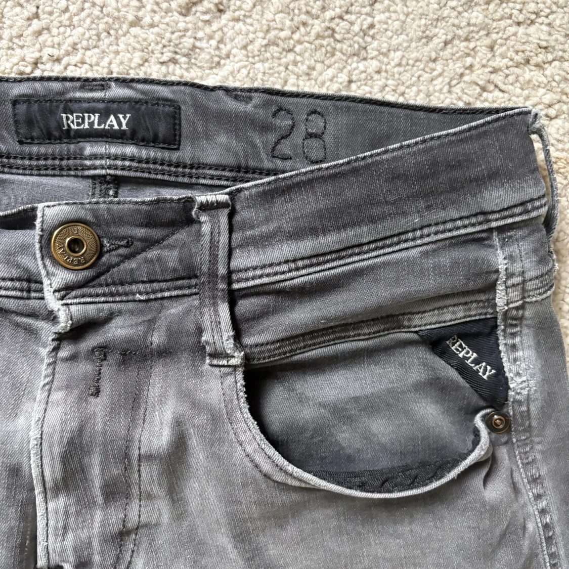 Tja, säljer nu dessa mörkgråa replay Anbass jeans. Säljer de för att de är för små. Storleken på de är w28 l32, det tråkiga med de är att de inte är i så bra skick, vill du ha mer bilder så skriv! Pris kan såklart diskuteras vid snabb affär!