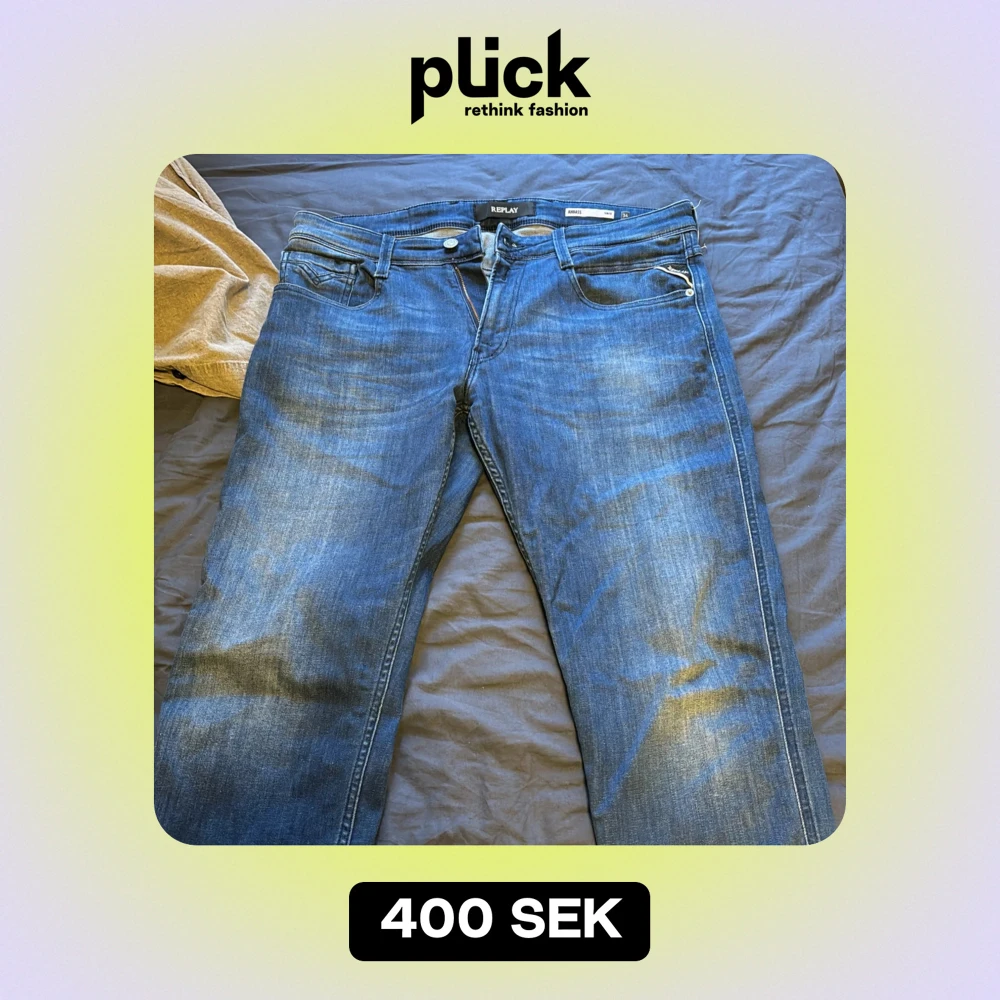 Säljer ett par snygga blå jeans från Replay i modellen Anbass. De har en klassisk femficksdesign och en bekväm passform. Perfekta för både vardag och fest! 🕺34w 32L