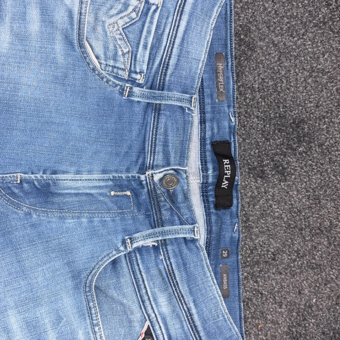 Säljer ett par Replay Hyperflex Anbass jeans i ljusblå tvätt. Jeansen har klassisk femficksdesign, smal passform och stretchigt material för extra komfort. Snygga detaljer med Replay-logga. Nypris ligger på ca 1800kr hör av er vid intresse Storlek 29/30
