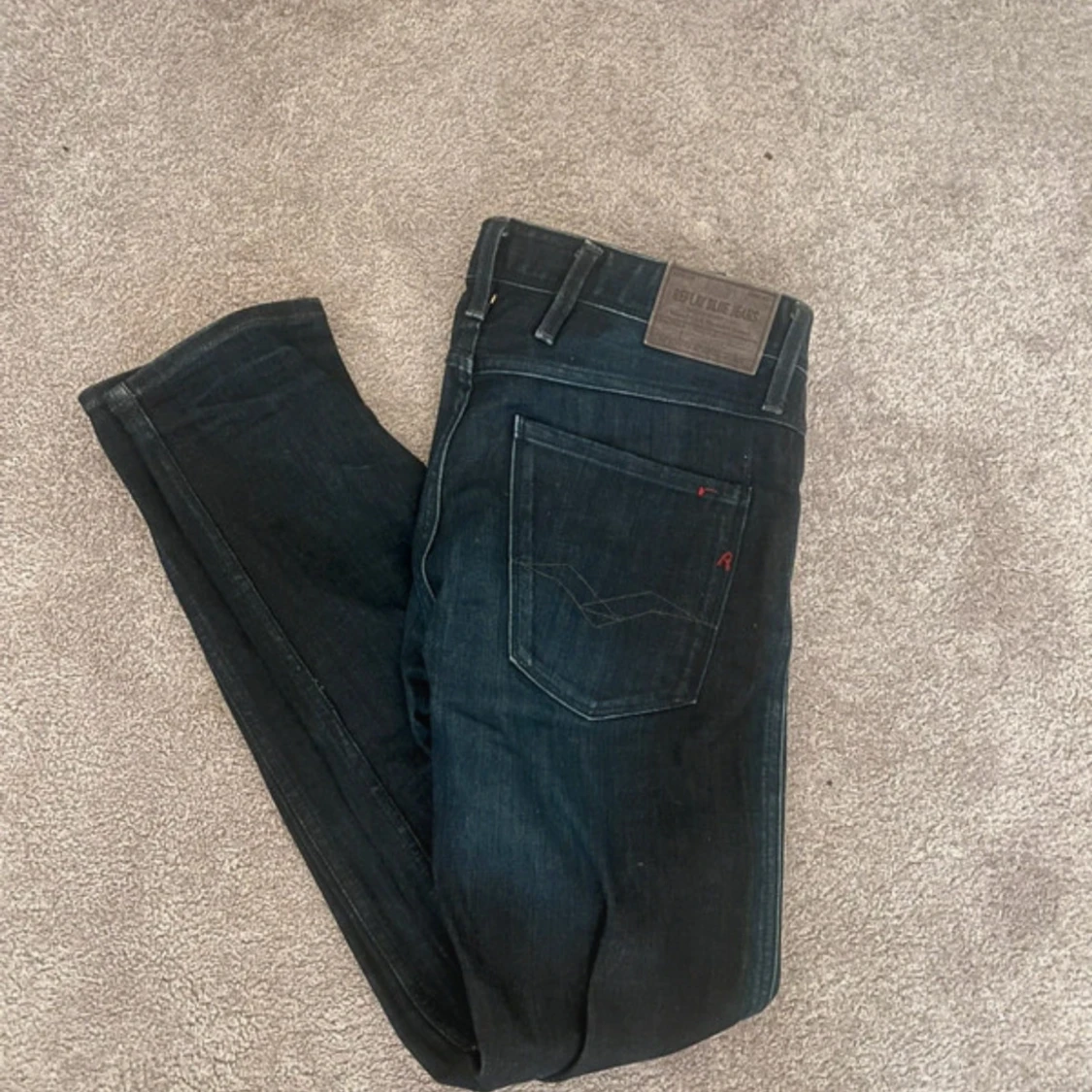 riktigt feta ambass replay jeans i mörkt blå i mycket bra skick. storlek är 31 och jag säljer därför storleken är gnutta för liten för mig. Hör av er om ni har några frågor!☺️