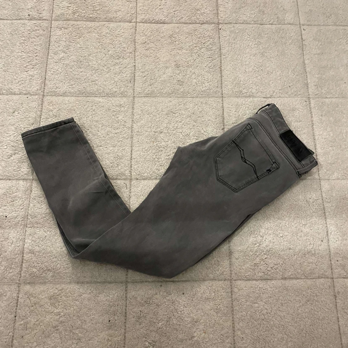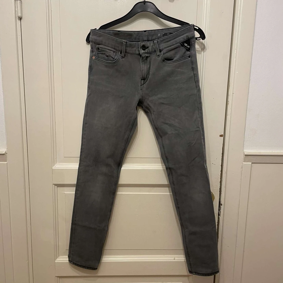 Snygga grå jeans från Replay, modell Anbass. Slim fit med klassisk femficksdesign och svarta detaljer på bakfickan. Jeansen har väldigt små slitningar vid låret som knappt syns. Jeansen har normal midja och är tillverkade i mjukt bomullsmaterial med stretch för extra komfort.