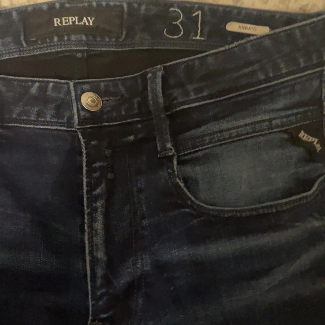 Snygga mörkblå jeans från Replay i modellen Anbass. De har en klassisk femficksdesign och en knappgylf. Perfekta för en stilren look.