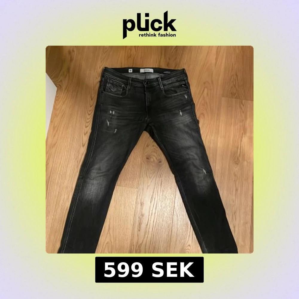 Säljer ett par feta grå jeans från Replay i storlek W32 och L32. Jeansen har skinny passform och coola slitningar framtill. Jeansen har fem fickor, dragkedjegylf och tydliga Replay-detaljer på vänster ficka. Materialet är stretchigt jeans för en bekväm känsla och de har en något tvättad look. Köpte dem för ett par månader sedan men knappt använt då jag tycker att dem är för långa för mig. Köpte dem nya för 1600kr och säljer för 599kr. Pris kan diskuteras!