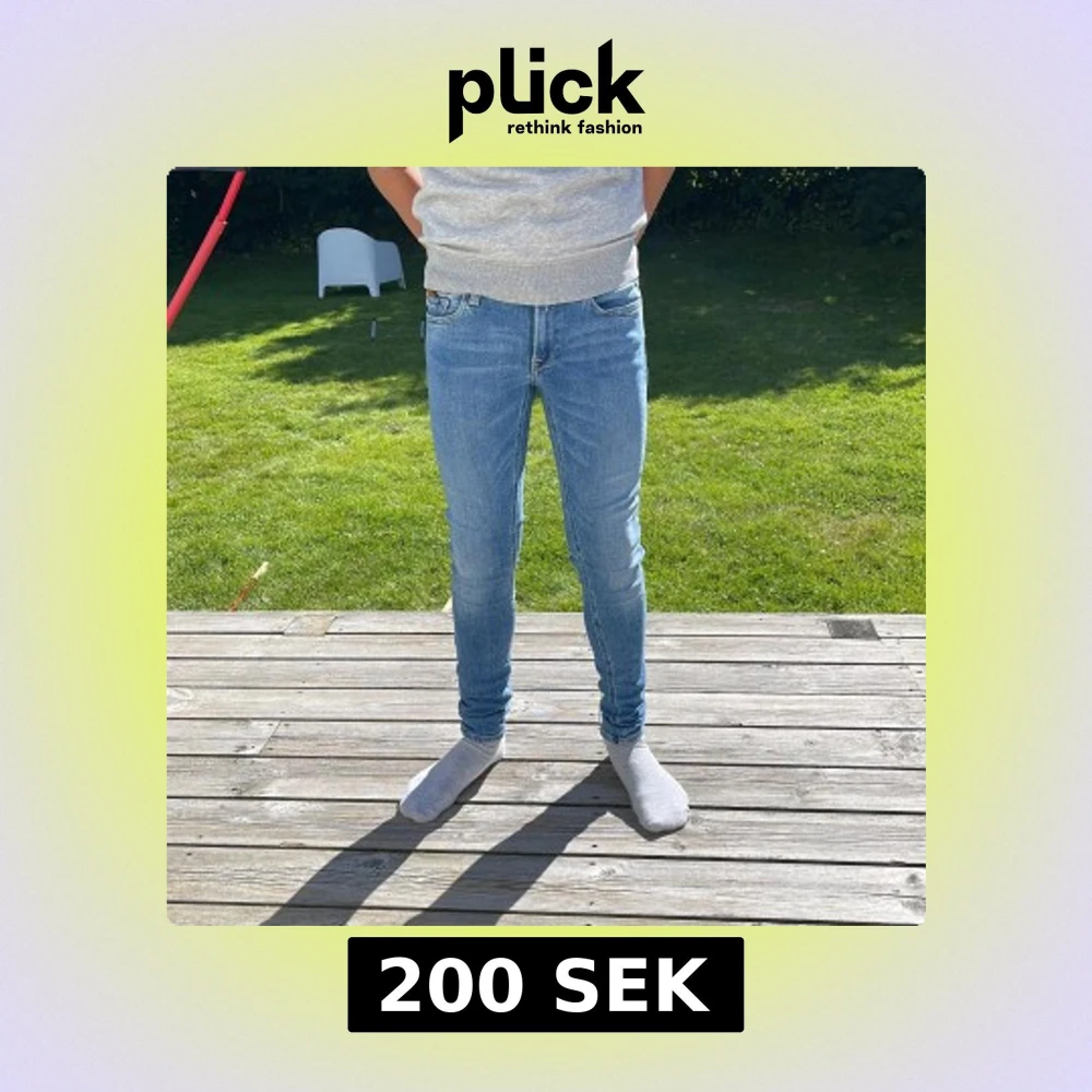 Säljer ett par snygga Replay skinny jeans i ljusblå denim med klassisk sexficksdesign och dragkedjedetalj vid ena fickan. Jeansen har låg midja och smal passform som sitter tight hela vägen ner. Perfekta för dig som gillar en modern och stilren look. Pris kan diskuteras
