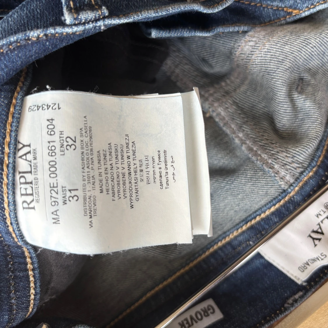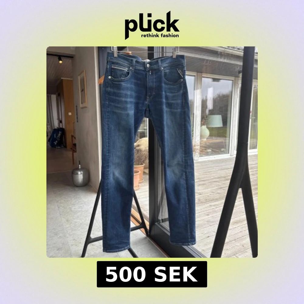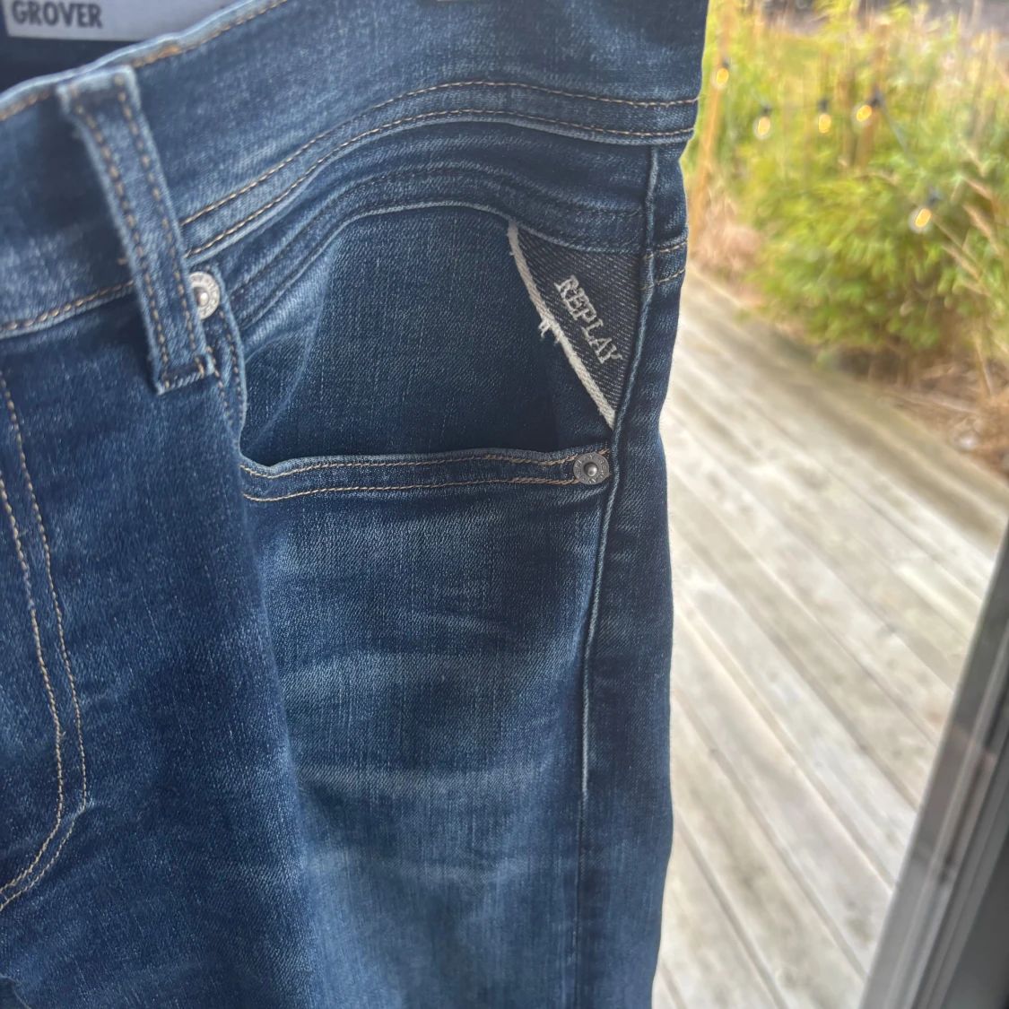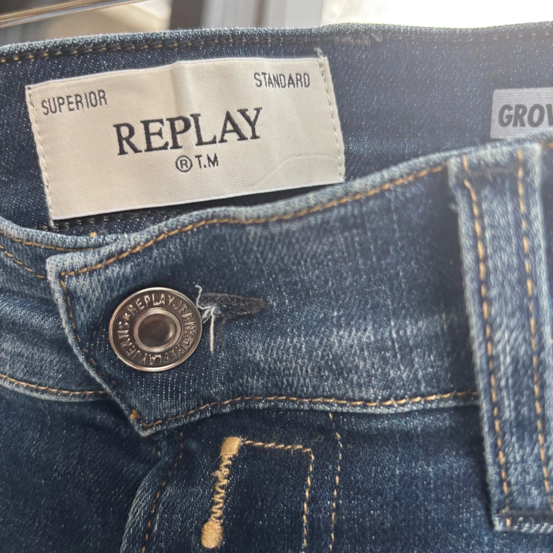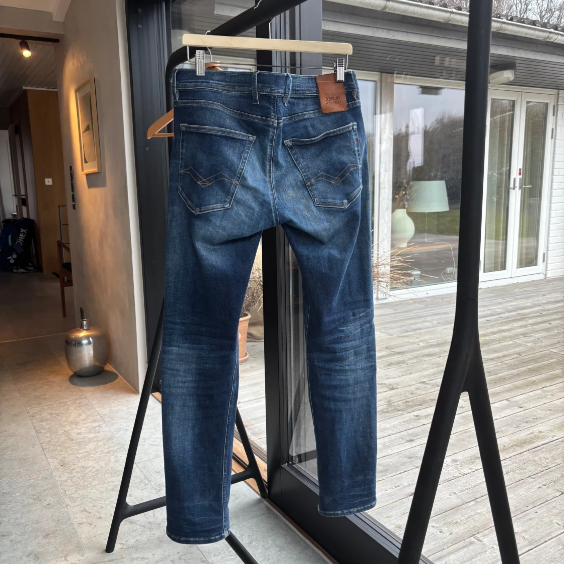 Snygga blå jeans från Replay med klassisk femficksdesign och knappgylf. Jeansen har en modern passform och är perfekta för en avslappnad stil. Märkesdetaljer på baksidan och knappen ger en extra touch.