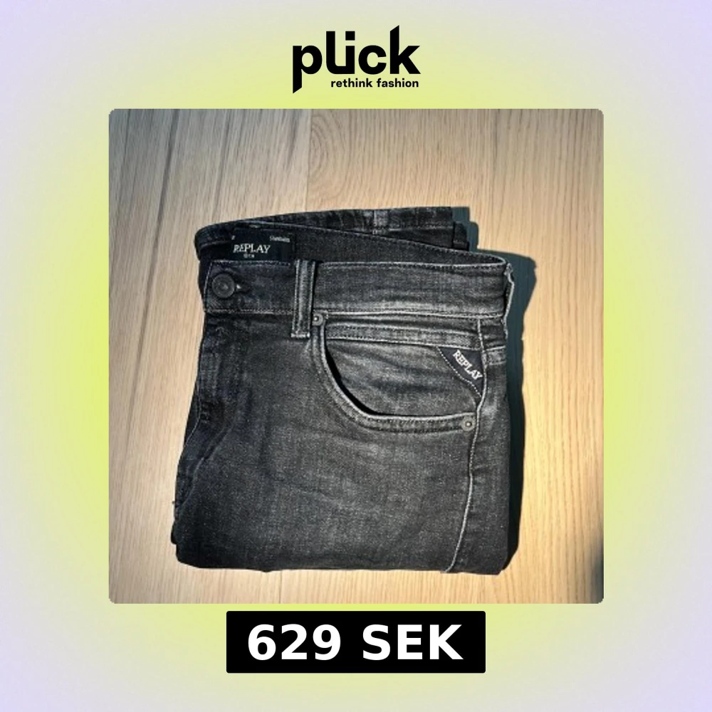 Snygga svarta jeans från Replay med klassisk femficksdesign och knappgylf. Perfekta för en stilren look. Märkesdetaljer på fickan ger en extra touch. Knappt använda och säljer det riktigt billigt.