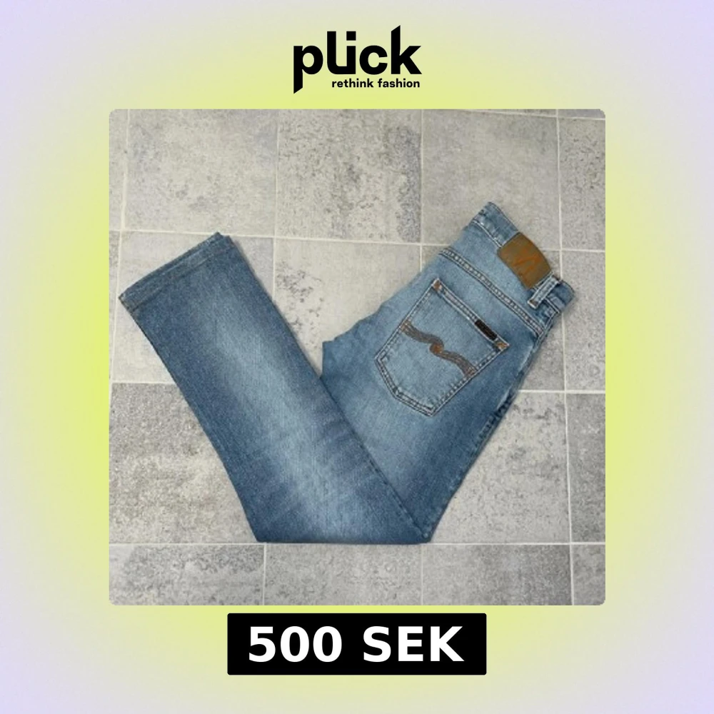 Säljer ett par ljusblåa Nudie jeans med modellen Grim Trim i storlek 30/30. Skicket är 10/10. 🟢Mitt pris: 300kr 🔴Nypris: 1600kr