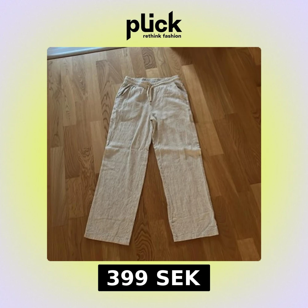 Säljer ett par bekväma beige linnebyxor från Grunt. 10/10 skick aldrig använt helt som nya. Nypris 499kr säljer för 149kr Byxorna har en elastisk midja med snörning och en avslappnad passform. Perfekta för en avslappnad stil. Size M i ungdomsstorklek rekommenderad ålder 12/13 år.