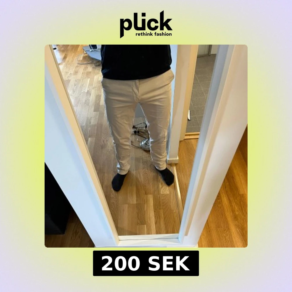 Vita, kanske även en liten touch av beige i färgen, chinos som jag inte har minne av att jag ens använt. Men de är riktigt snygga och har inga defekter, säljer då jag inte behöver dem. Jag har storlek 32/32 och sitter bra på mig.
